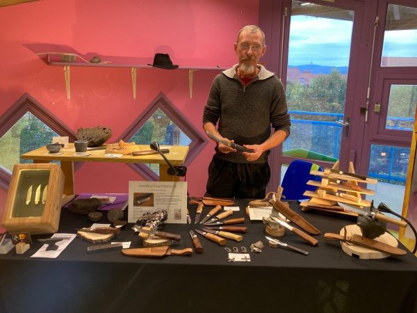 « La lame de couteau est en rouille de météorite retransformée en métal ; on fait une pâte feuilletée de métal et les motifs se dessinent à coups de marteau. » Dans l’une des salles de l’ancienne crèche que partagent cinq artisans d’art, Emmanuel Verdier tient en main le Tanto « Tenchi » (Terre-Ciel), une pièce magnifique, avec certificat d’authenticité, qu’il a installée en bonne place au milieu d’autres réalisations nées de son savoir-faire dans son atelier de Pouilly-les-Feurs, dans la Loire. Ce forgeron, comme il l’indique sur sa carte de visite, fait partie de la quarantaine d’artisans d’art qui, jusqu’au dimanche 29 septembre, animent la première Biennale des métiers d’art de Brioude.