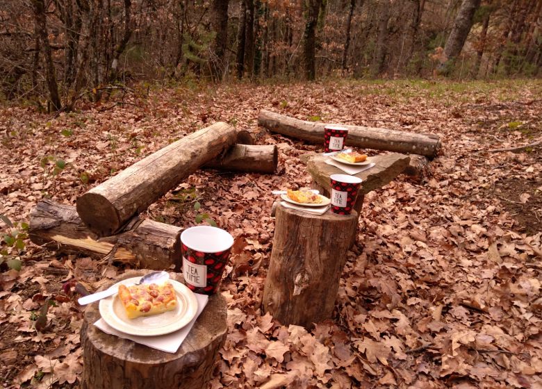 à pied uniquement, sensibilisation à l'environnement et au milieu forestier, pas de vaisselle jetable, produits locaux et/ou maison.