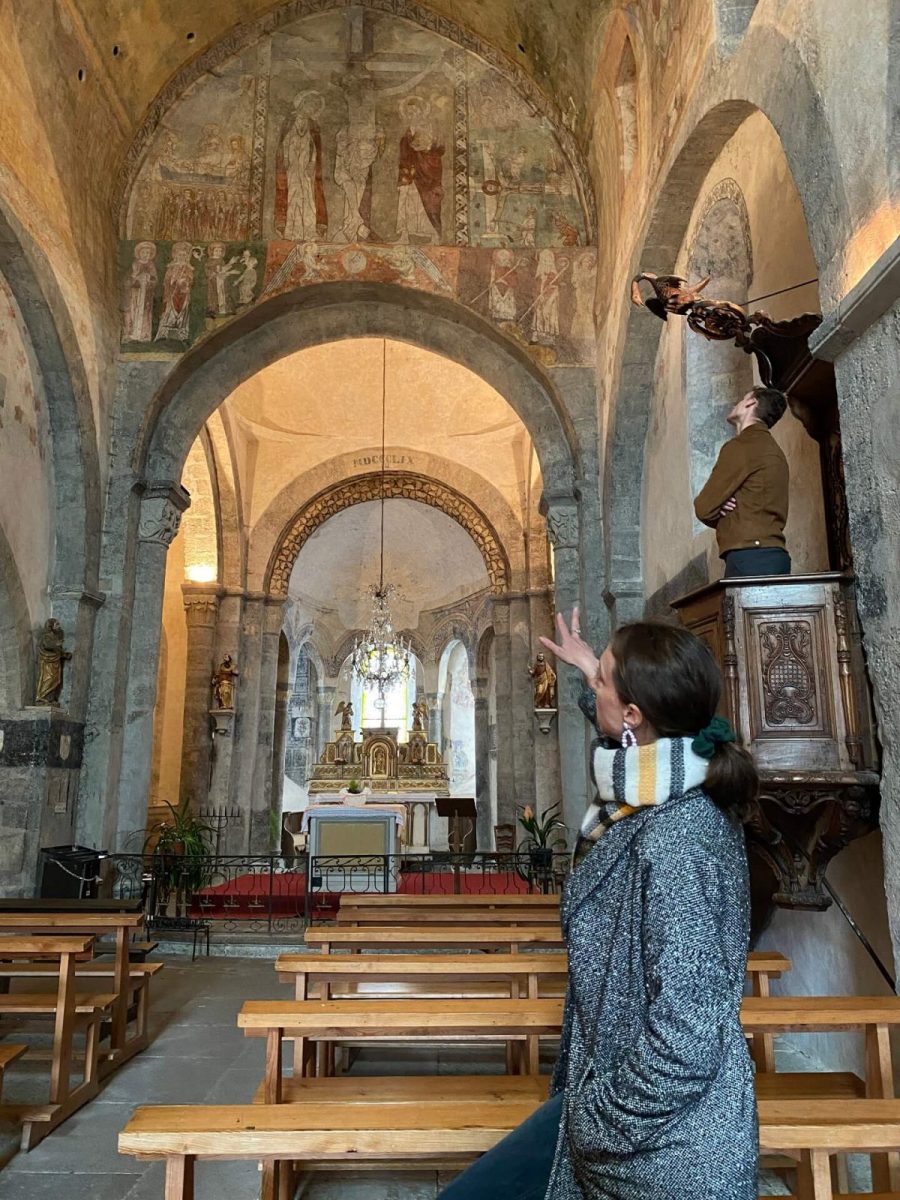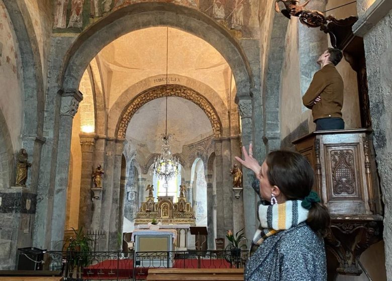 > L'église abbatiale Saint André (romane) et ses peintures murales - le plus grand ensemble d'Auvergne - avec