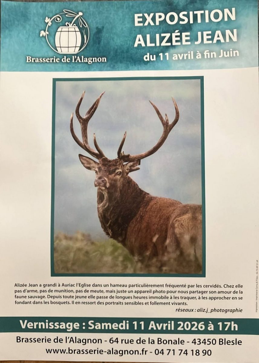 Vernissage à 17h de l'exposition de photographies animalières d'Alizée Jean, suivie à 18h30 d'une rencontre avec Jean-Jacques Lallemant de la LPO et la projection d'un film sur les hirondelles d'Auvergne.