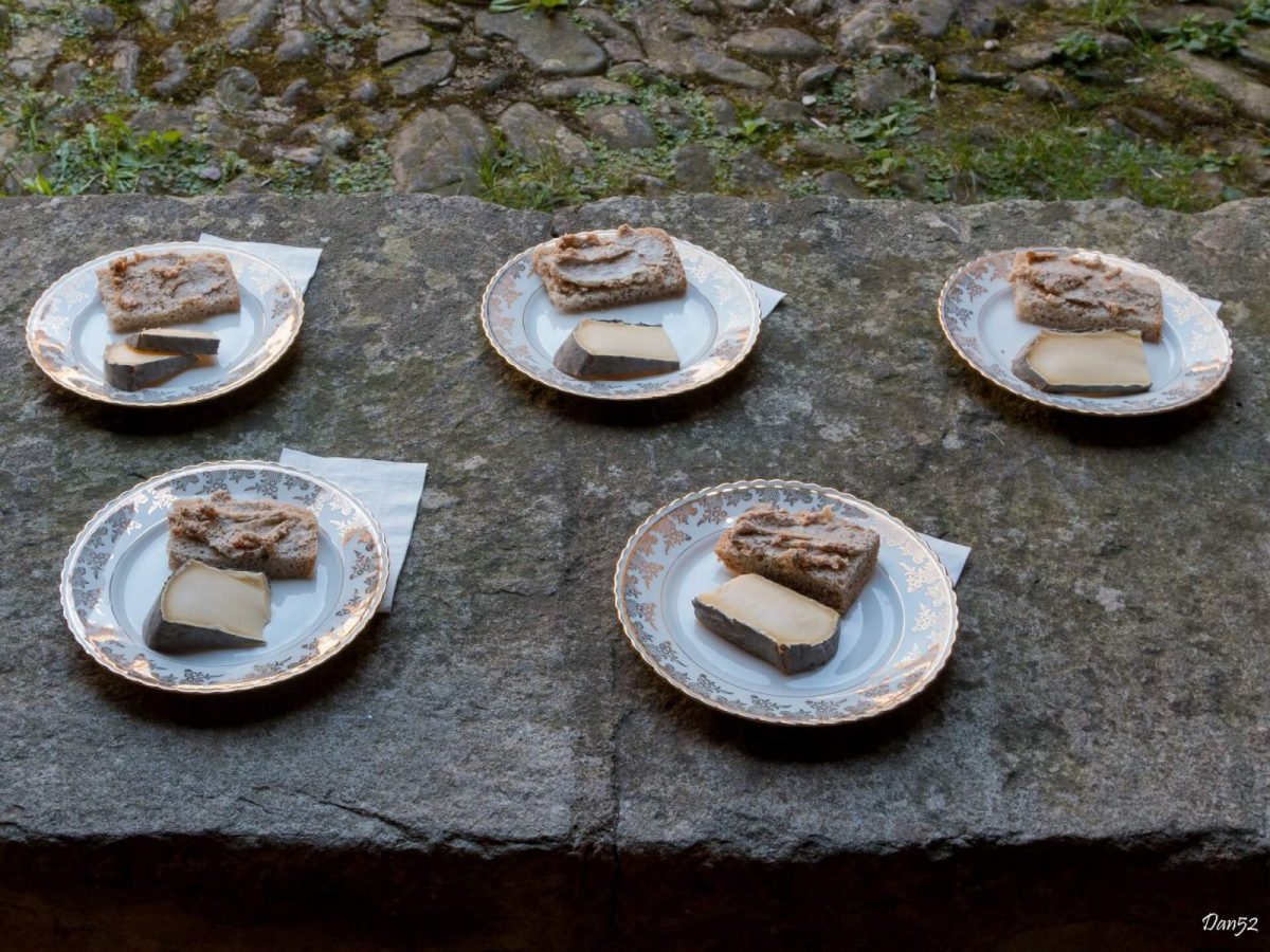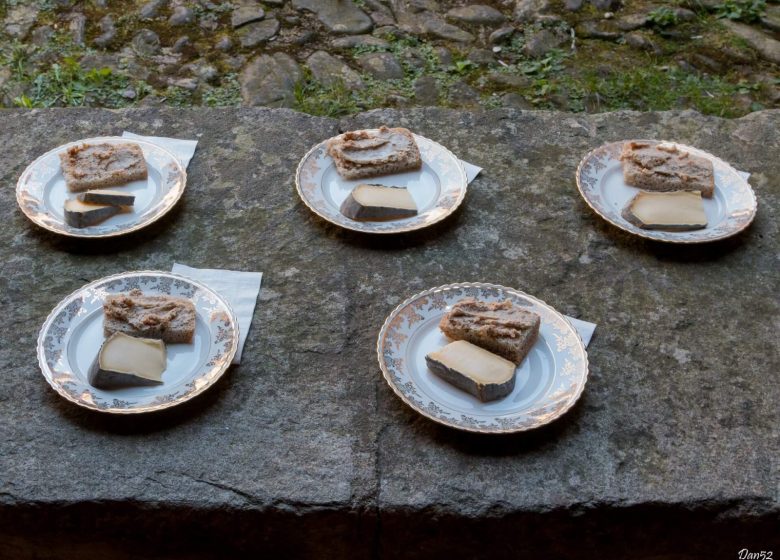La visite se clôturera sous l'ancienne halle par un apéritif à base de produits locaux et/ou maison. Exemples choisis : vin rosé de Boudes, terrines fermières bio de Lavaudieu, dés de Cantal au lait cru, pain maison...