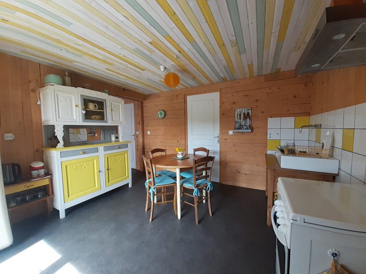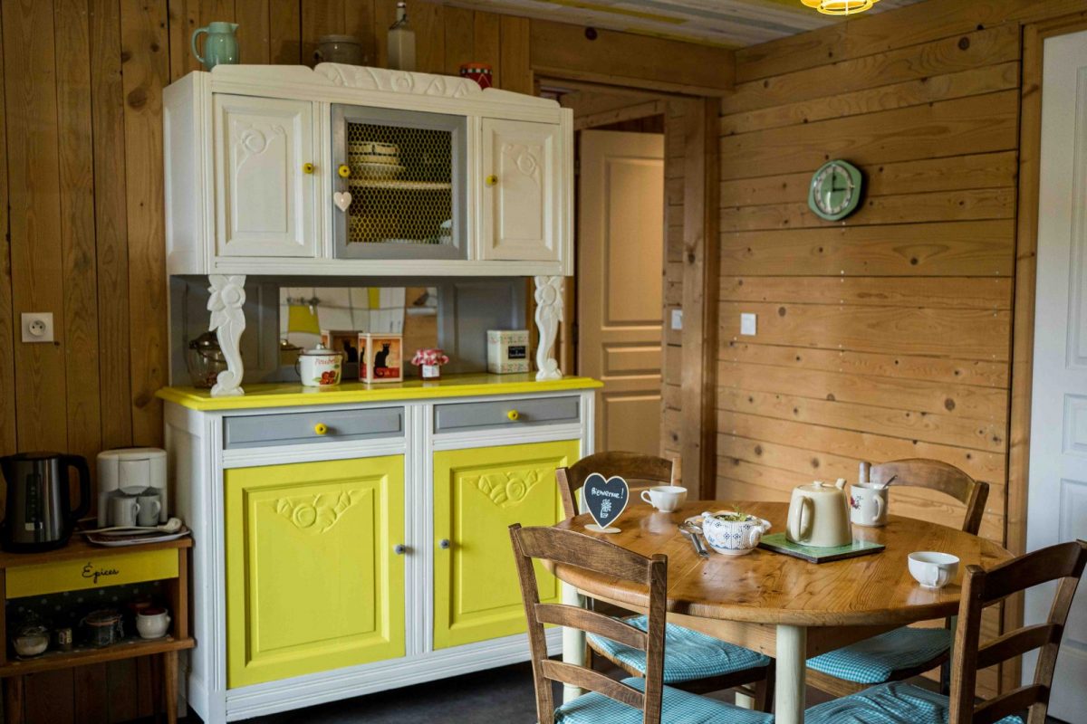 Petit hébergement éco-responsable de 45 m2, cette chambre d’hôtes familiale avec cuisine se situe au 1er étage de l’ancien corp de ferme (accès privé par un escalier extérieur). Il comprend une cuisine équipée (évier, cuisinière électrique, four à micro-ondes, réfrigérateur-congélateur, cafetière, bouilloire, grille-pain, vaisselle, ustensiles et batterie de cuisine, etc ...).