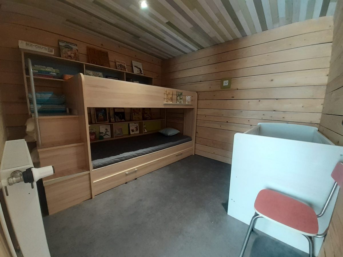 Une chambre parentale (1 lit double en 160 cm x 200 cm ou séparable en 2 lits 80x200 cm) attenante à une petite chambre pouvant accueillir 3 enfants maxi. (lit mezzanine superposé 2 couchages en 90x200 cm + lit d'appoint 90x190 cm) + lit bébé, chaise-haute.