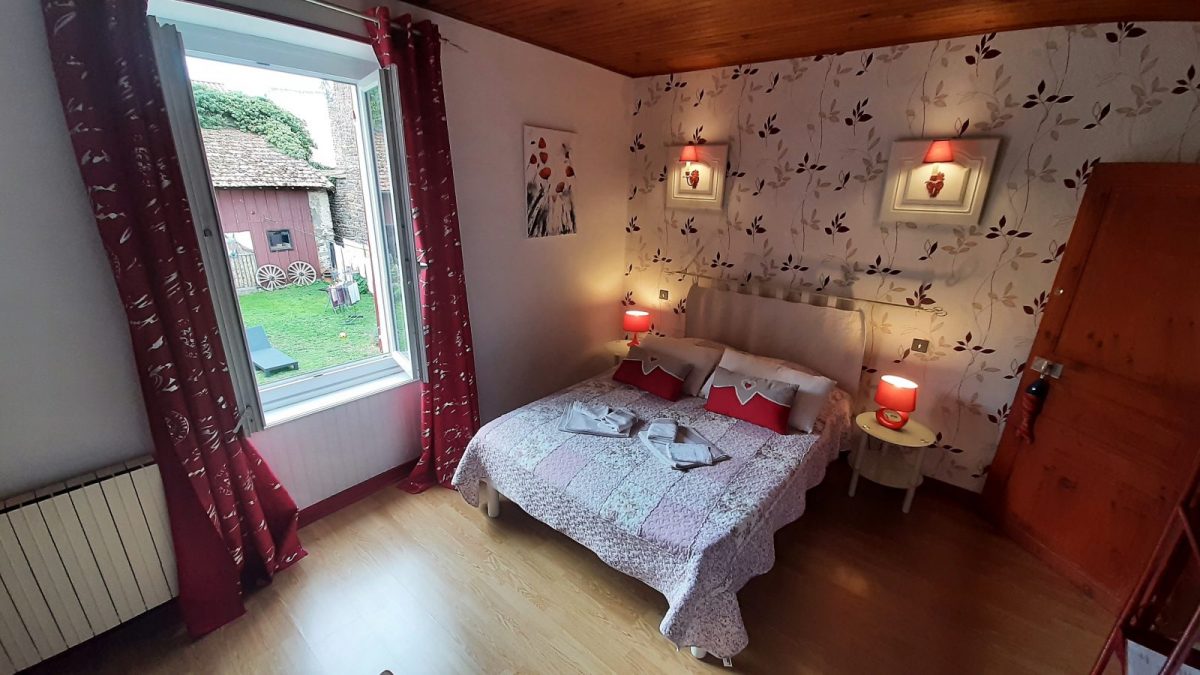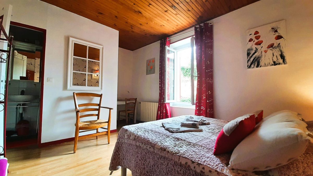 - Chambre Grenat : 1 lit 2 pers. en 140x190 cm, sanitaires privatifs et attenants à la chambre (douche, vasque et WC). Sèche-serviettes électrique.