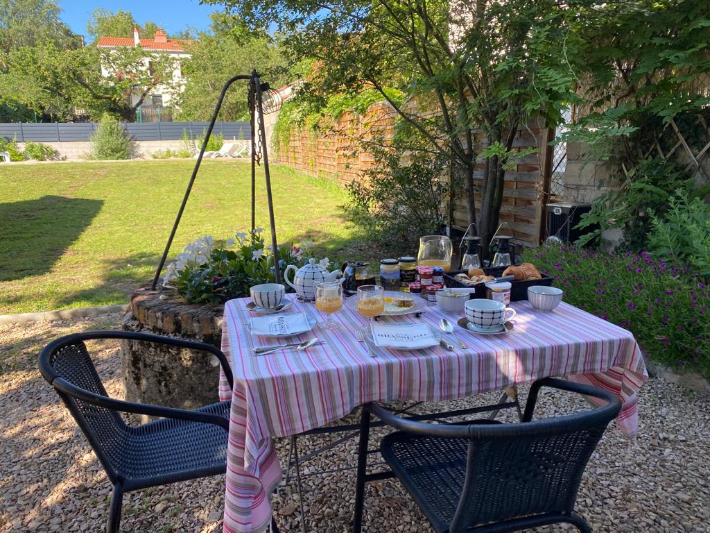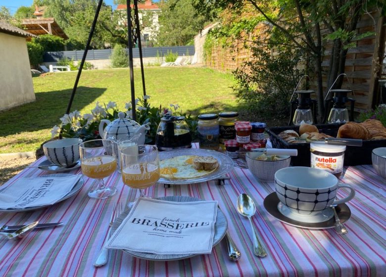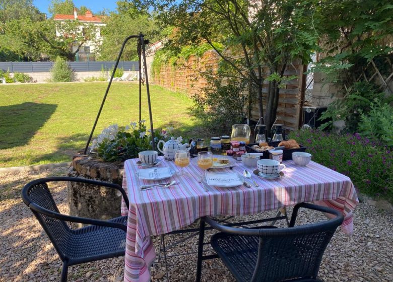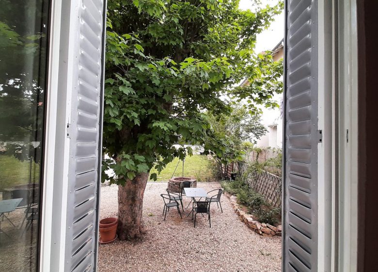 Terrain clos, arboré et fleuri à la belle saison. Mobilier de jardin. Le petit-déjeuner copieux peut être pris sous le bel érable sycomore dès les beaux jours.