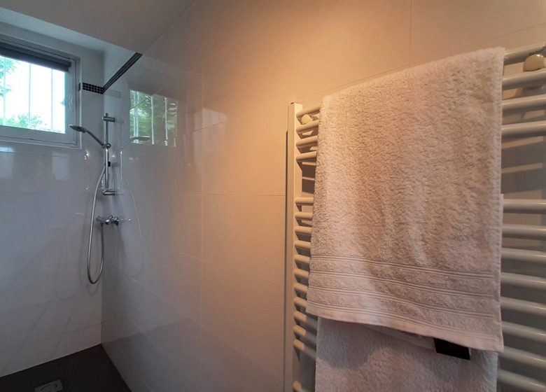 → Salle d’eau privative et attenante à la chambre avec douche à l’italienne, vasque sur meuble, radiateur sèche-serviettes, fenêtres, gel lavant corps-cheveux et linge de toilette fournis, …