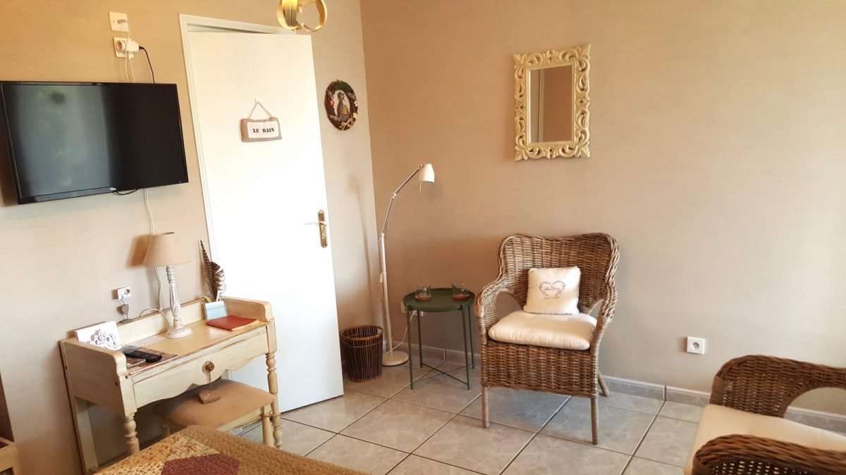 2 chambres doubles et 1 chambre quadruple : chambre "Romance" et chambre "Tropicale" (chacune avec un lit 160x200). Chambre "le Loft" (1 lit de 2 pers. 160x200 + 2 lits 1 pers. superposés 90x190). TV écran plat et sanitaires privatifs pour chaque chambre (douche, lavabo, WC).