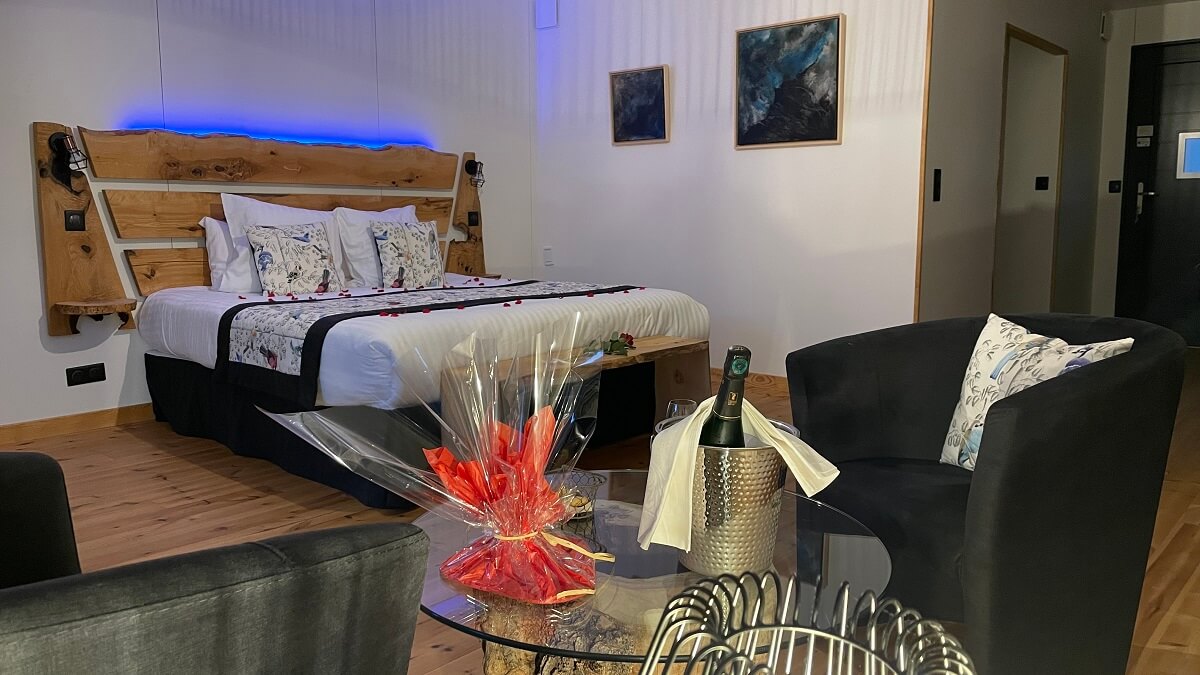 Les cinq suites, d’une surface de 40 m2 sur pilotis, bénéficient d’une construction avec des matériaux naturels et locaux. Elles sont équipées d’une salle d’eau avec WC dissocié et d’une terrasse avec balnéo privatif accessible de 11h à 23h.