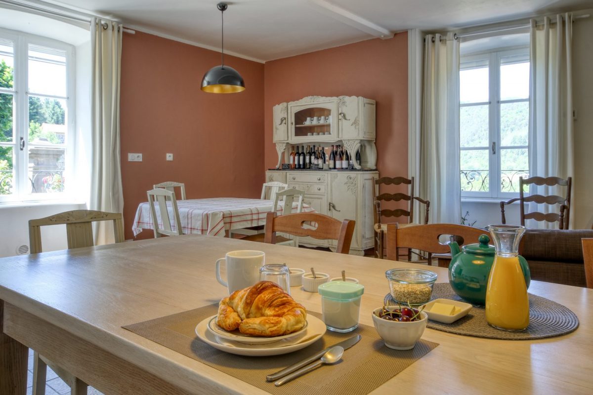 Les petits-déjeuners copieux sont servis au rez-de-chaussée dans la pièce à vivre.