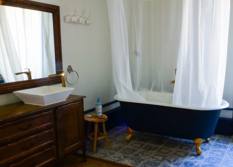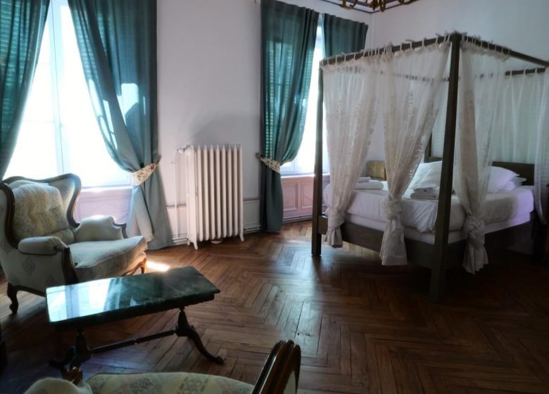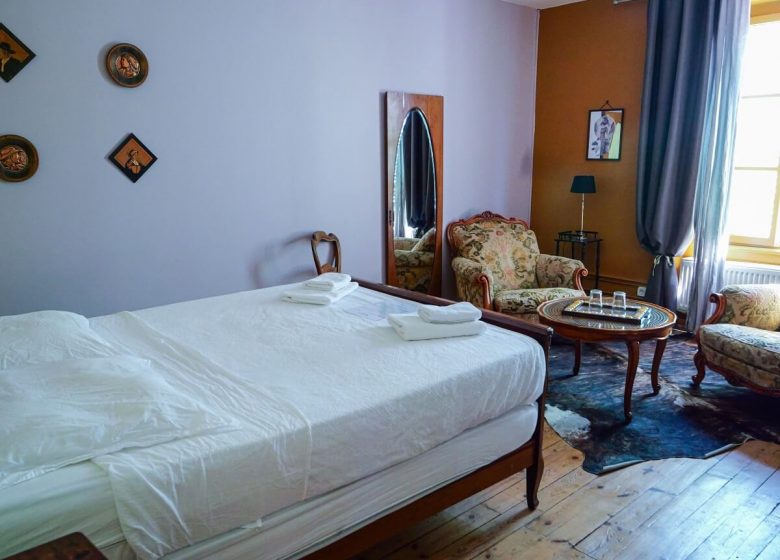 Chambre "Impériale" située au 1er étage, 1 lit en 140x190, salle de bain baignoire privée.