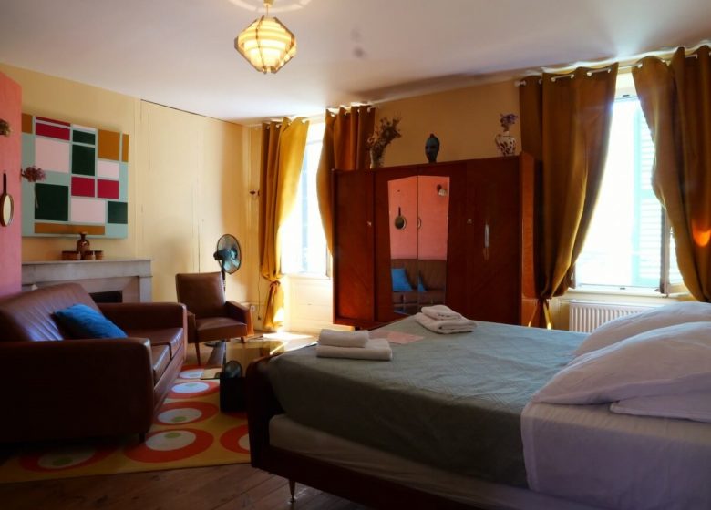 Chambre "Bardot" située au 2ème étage, 1 lit en 140x190, salle d’eau privée.