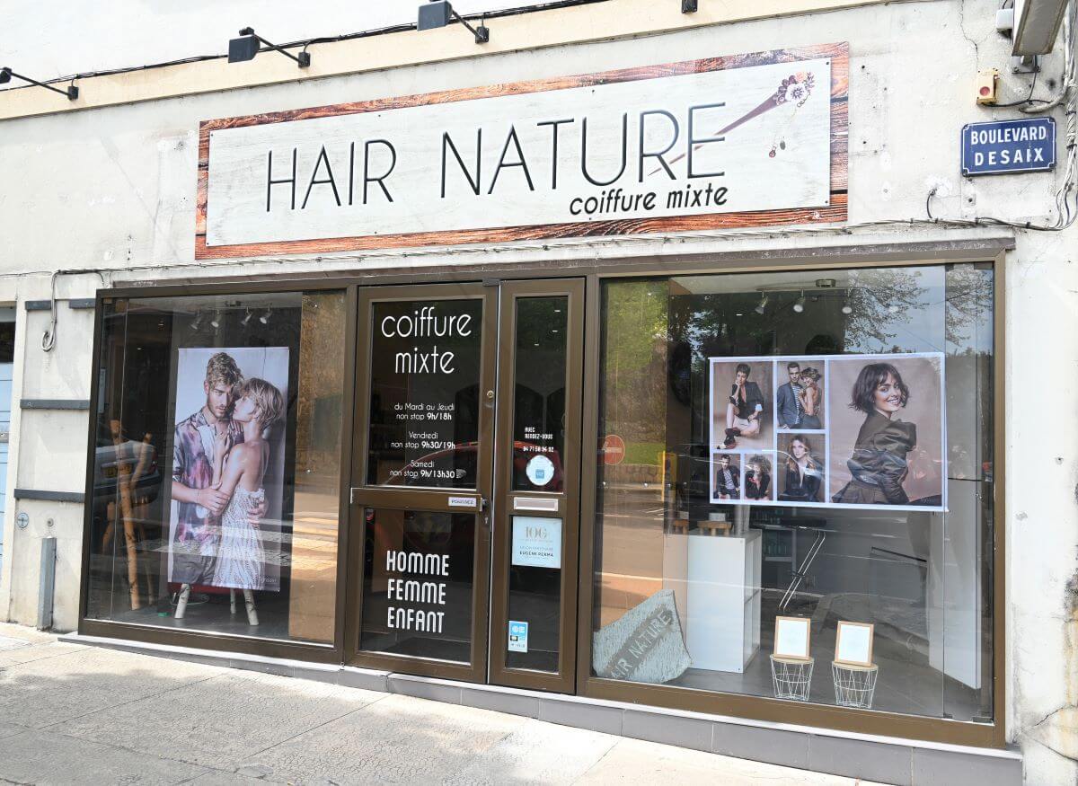 Utilisation de marques françaises (Eugène Perma, Fauvert), produits les plus naturels possibles (coloration sans ammoniaque, végan, bio, huiles végétales)