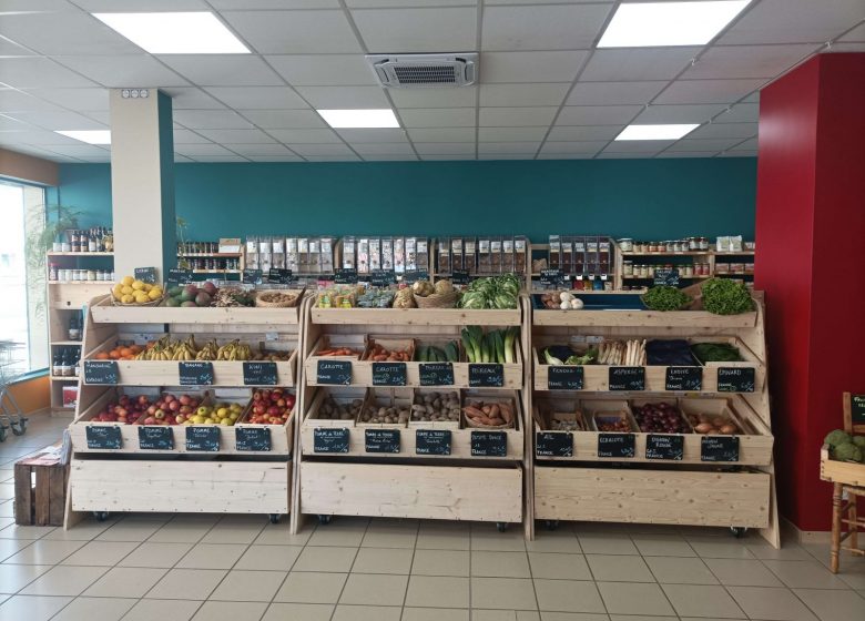• une épicerie de village où se mêlent les étals de fruits et légumes de saison, les produits locaux ainsi que les indispensables de l’alimentation au quotidien ;