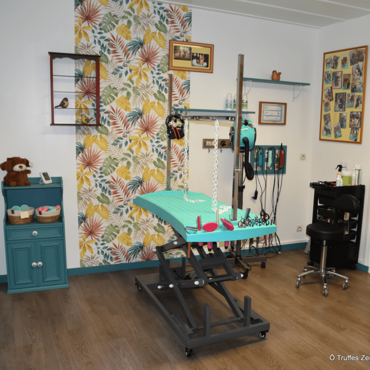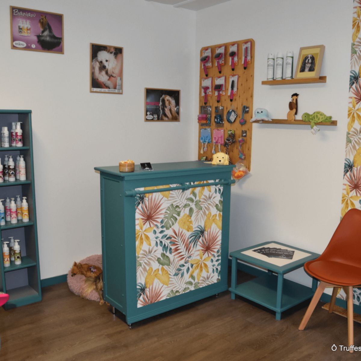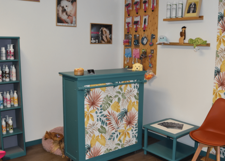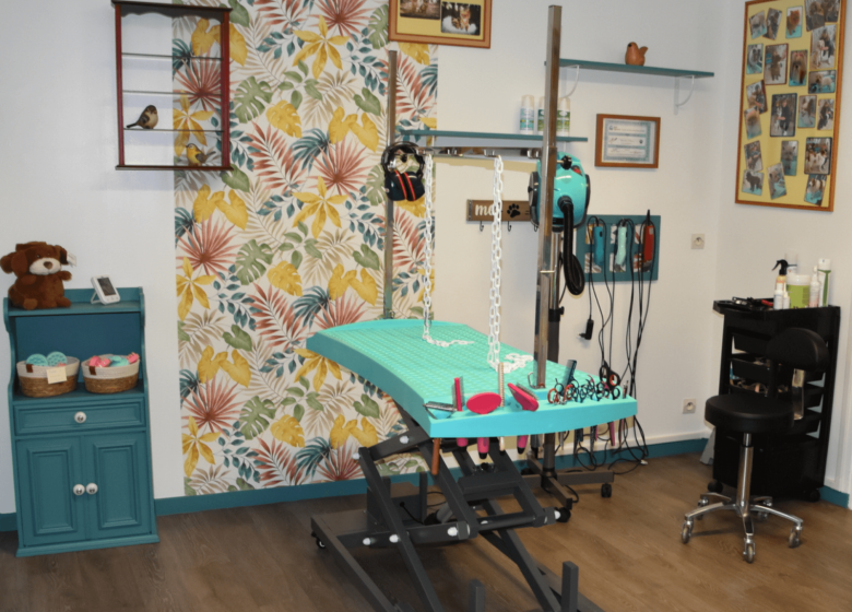 Salon de toilettage pour chiens avec un entretien complet (bain, séchage, brossage, tonte, coupe ciseaux ou épilation, soin des yeux et des oreilles, coupe des griffes). Egalement massage bien-être et ainsi réduire le stress, soulager la douleur, augmenter la mobilité.