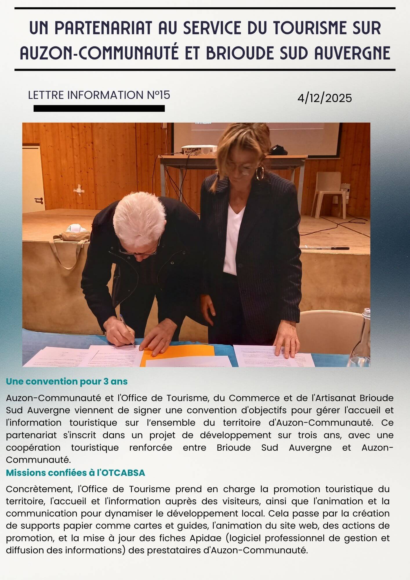 Suivez toute l’actualité du territoire Brioude Sud Auvergne. Lettre info n°15 Lettre Info N°14 Lettre info n°13 Newsletter 11 Newsletter 10 Newsletter 9 Newsletter 8 Newsletter 7 Newsletter 6 Newsletter 4 Newsletter 3 Newsletter 2 Newsletter 1