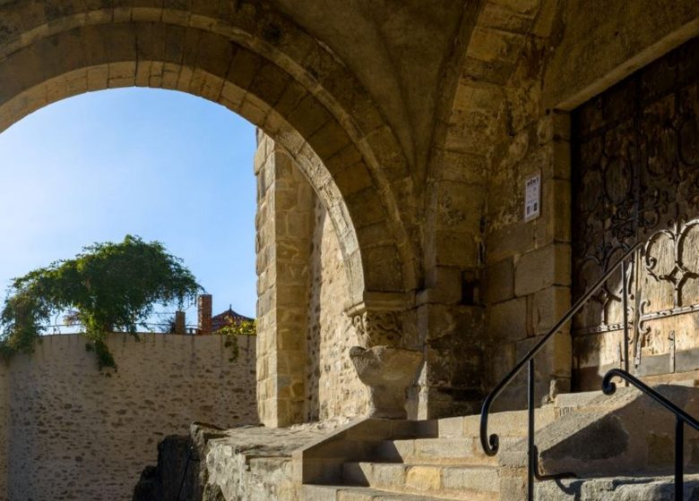 Contourner un rond-point par la gauche pour continuer tout droit en direction de Brioude. Au bout de la longue ligne droite [> fontaine], aller à droite, rue des Olliers et rentrer dans le centre de Brioude. Filer tout droit, traverser la place de la Liberté (Postel) puis continuer rue de Loraine, rue de Sébastopol vers l’office de tou-risme. Passer sous une arche en briques vers la halle aux Grains et déboucher derrière la basilique Saint-Julien.