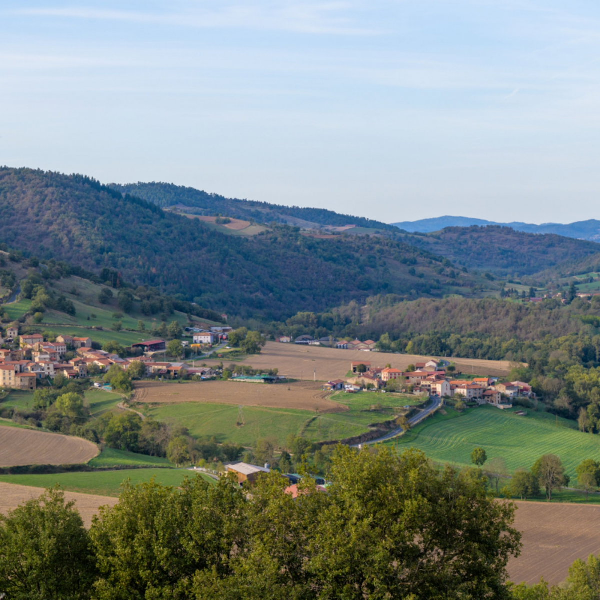 La suivre à gauche et contourner la colline en prenant toujours tout droit aux embranchements successifs. À Séniquette, poursuivre tout droit, sur la route [O> point de vue sur le château de Saint-Ilpize et la vallée de l’Allier].