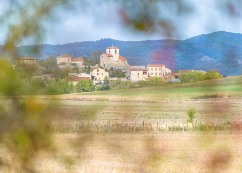De la mairie, prendre la route à gauche qui sort du village en direction du cimetière, puis virer dans la première route à droite. Traverser la D 19 ( > prudence !) [vue sur la maison forte de Lauriat] et suivre la piste en face jusqu’à une route. L’emprunter à gauche jusqu’à Bournoncle-Saint- Julien [O> four banal]. Poursuivre à droite sur la D 172 jusqu’à la sortie du hameau.