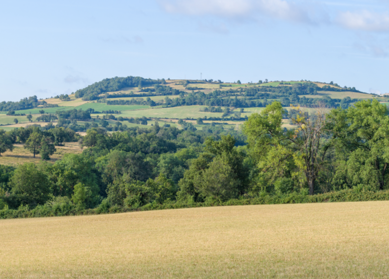 S’engager à droite dans une piste qui monte entre les terres agricoles. Plus haut, croiser une route et continuer dans un chemin. Après un passage en lisière de bois, arriver à un embranchement.