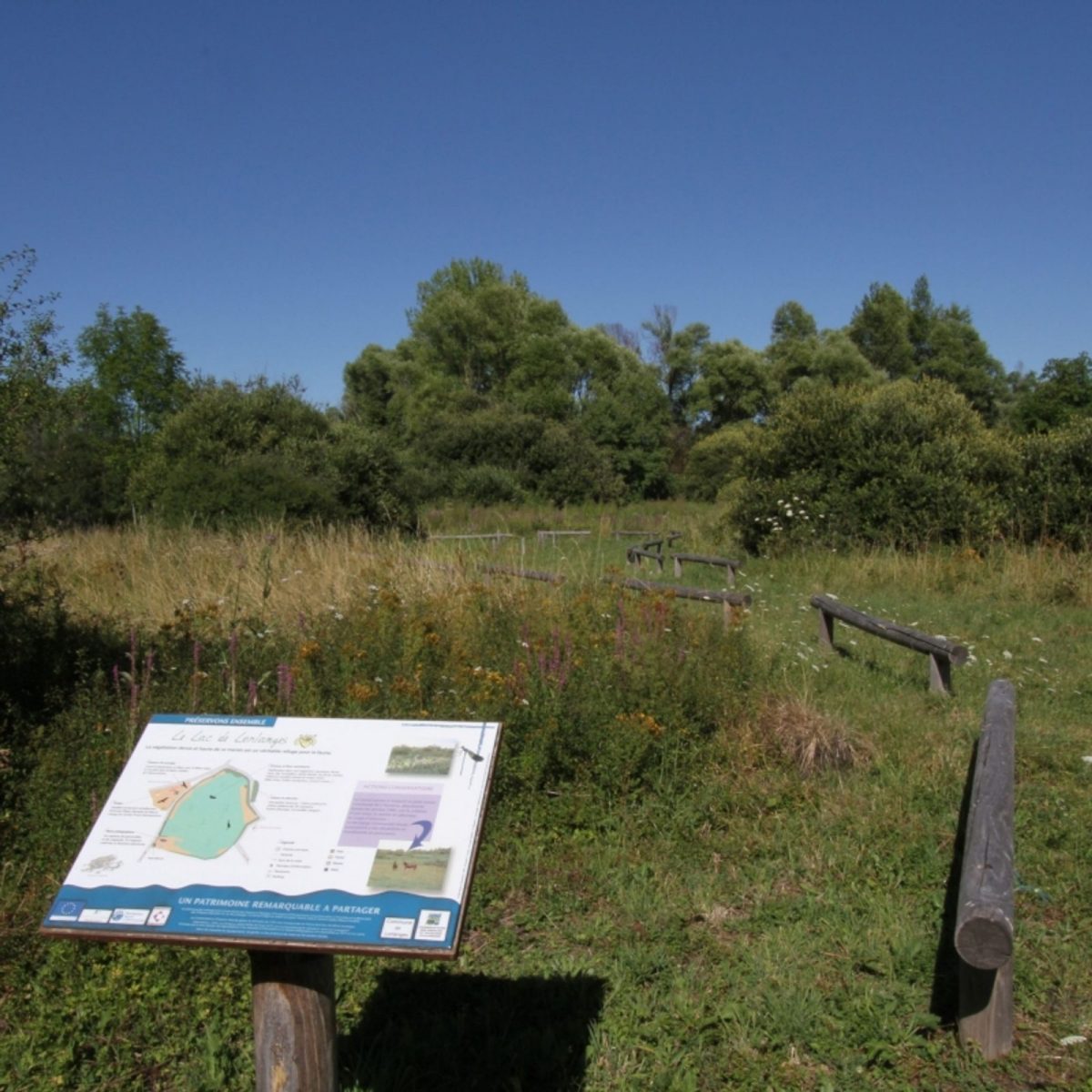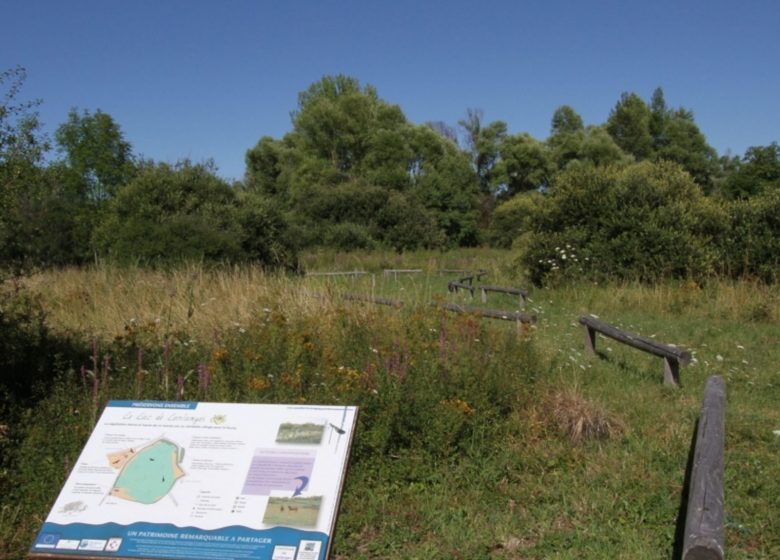 Prendre à gauche [O> plus loin, à droite, mare pédagogique et observatoire avec table d’orientation. L’appellation « lac », dans le brivadois, désigne des dépressions naturelles au sein de milieux