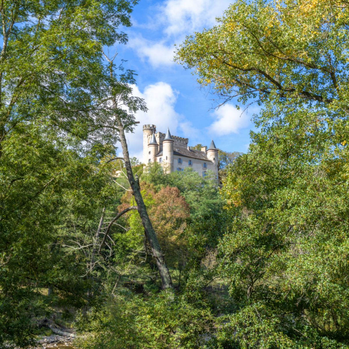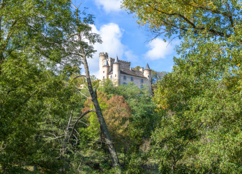 Emprunter à droite une piste. Poursuivre tout droit [O> ruines du château de Pouzols] jusqu’à un T [O> vue sur le château de Léotoing, au nord-est].