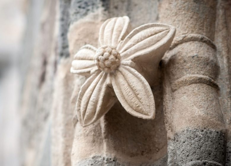 Suivre à gauche le chemin qui, en 1,7 km environ, descend jusqu’à Blesle [O> église Saint-Pierre, église Saint-Sébastien de Bousselargues, chapelle de la Chaigne, clocher Saint-Martin, tour de guet du Massadou, vieil hôpital, château du Bos, maison romane, château de Mercoeur,