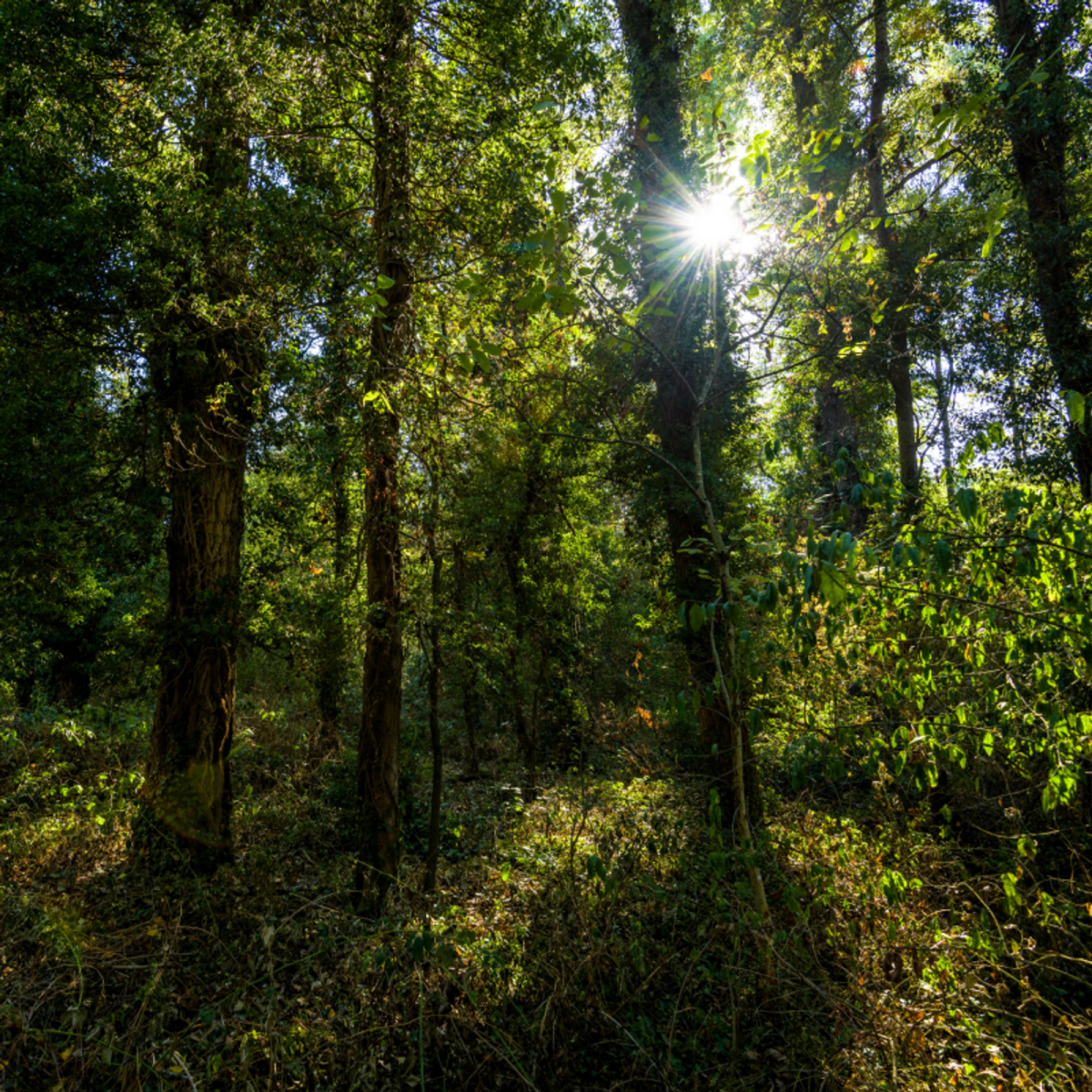 Obliquer à droite dans un chemin rocailleux. Déboucher sur un T ( > être attentif au balisage). Prendre à droite pour parvenir à une fourche. Continuer tout droit et atteindre une bifurcation au pied d’un petit mamelon, peu après la sortie du sous-bois.