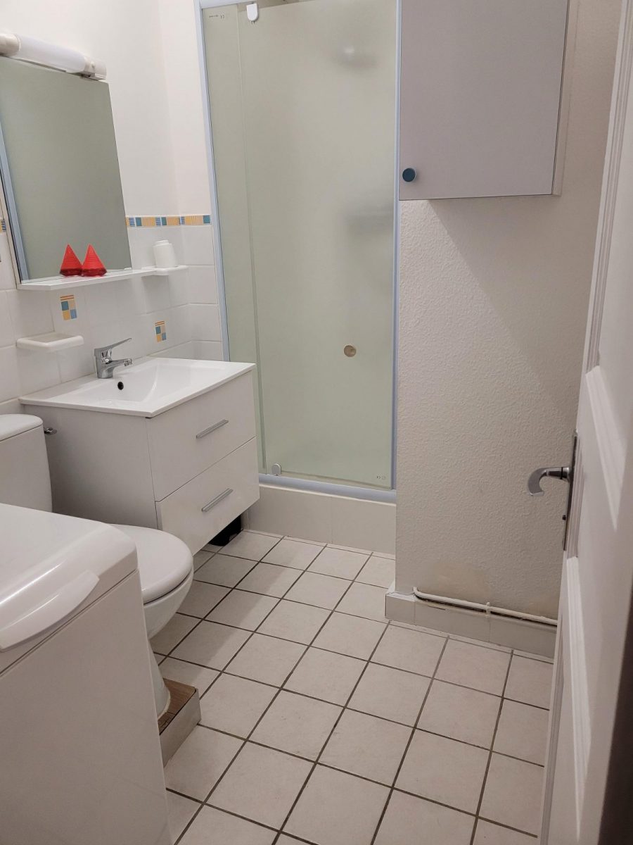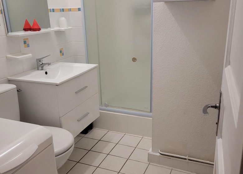 Vous y trouverez également une cuisine tous équipée (mini frigo, micro-onde, cafetière à filtre, bouilloire, grille pain, mini four, batterie de cuisine, vaisselles, ... ; Ainsi qu'une salle d'eau , WC avec un lave linge.