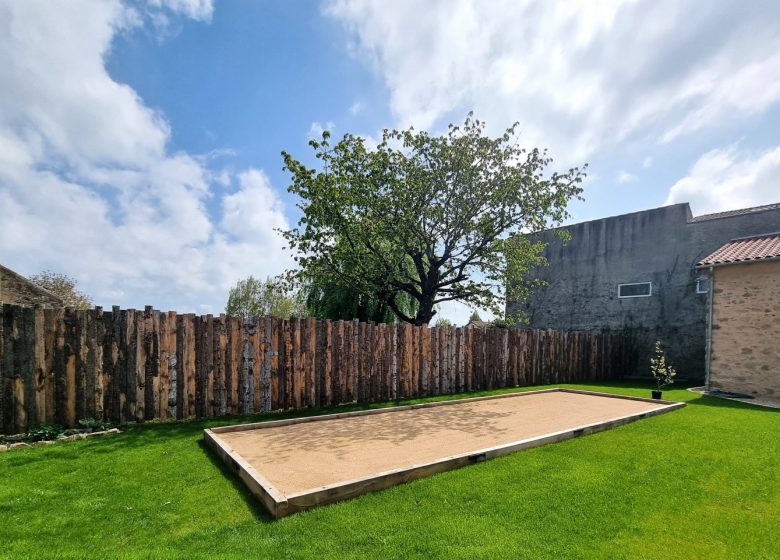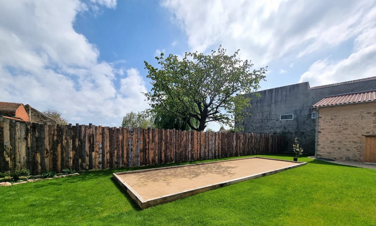 Joli terrain paysager (500 m2) avec terrain de boules.