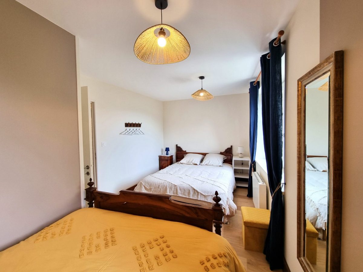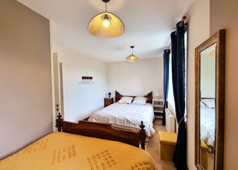 → Chambre 2 : 1 lit 2 personnes en 160 cm x 200 cm + 1 lit 2 personnes en 140 cm x 190 cm