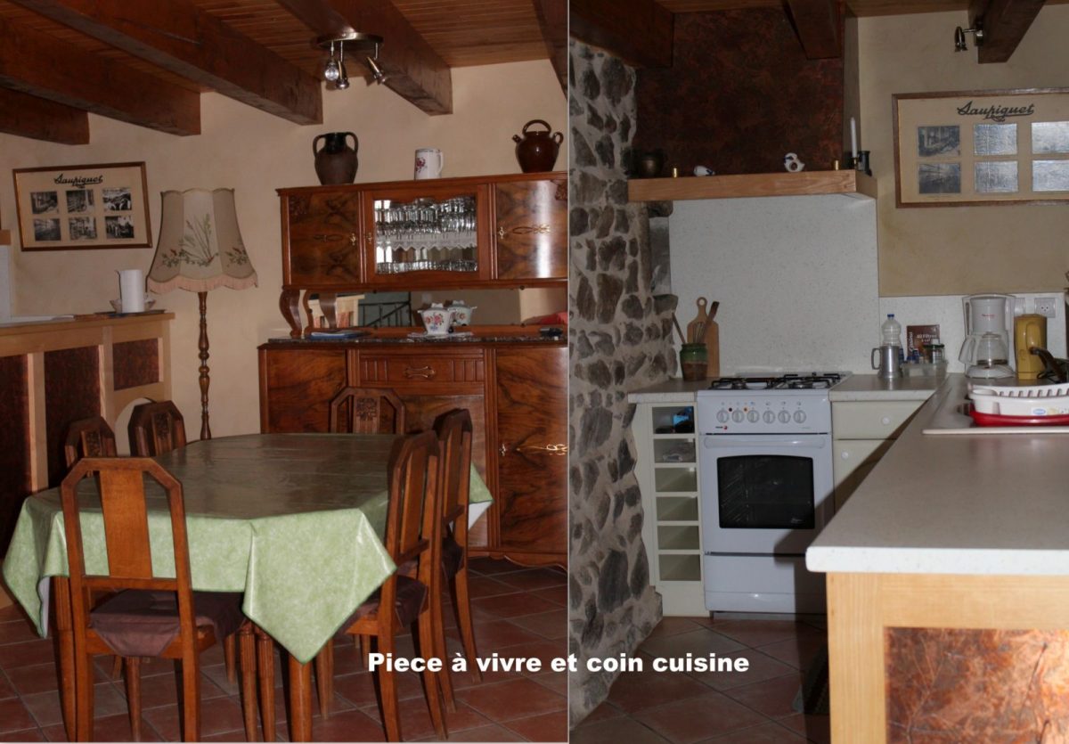 * 1er étage : Cuisine équipée : gazinière, four électrique, réfrigérateur avec compartiment congélation, micro ondes, cafetière, grille-pain, bouilloire...