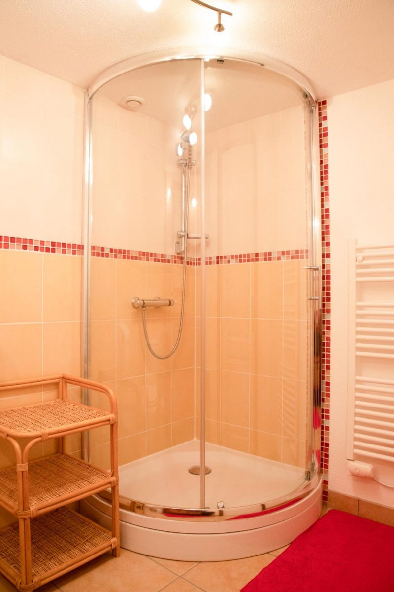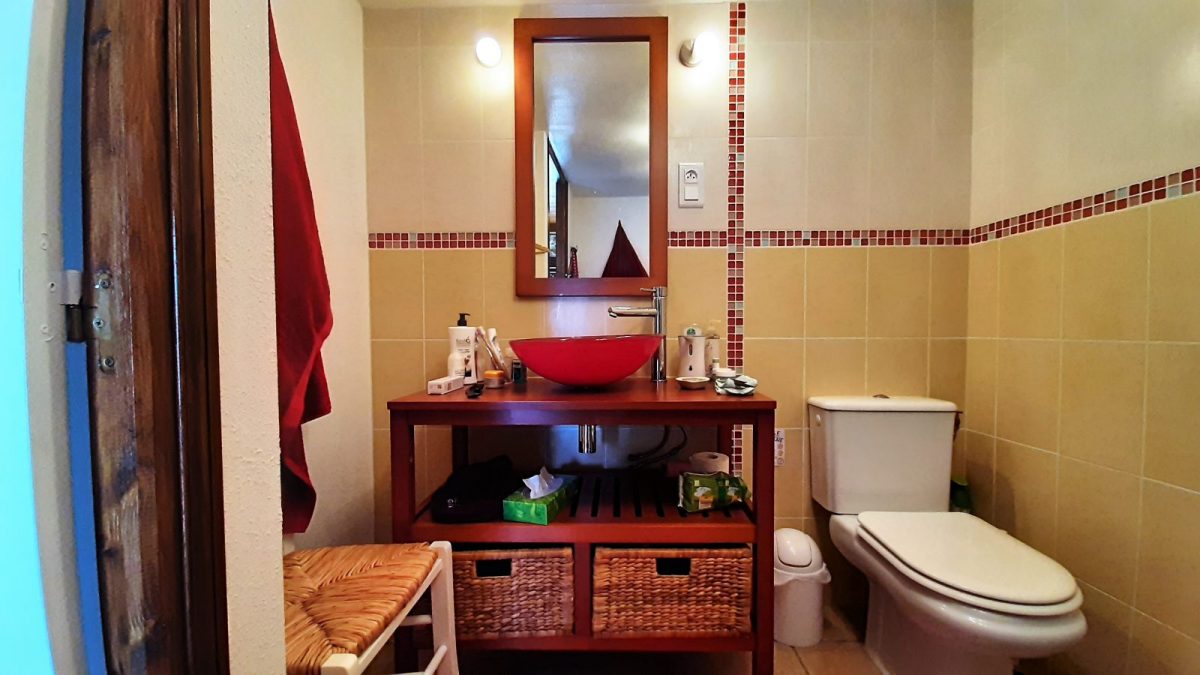Salle d'eau avec cabine de douche, vasque sur meuble, WC, radiateur sèche-serviettes, sèche-cheveux, VMC. Lave-linge.