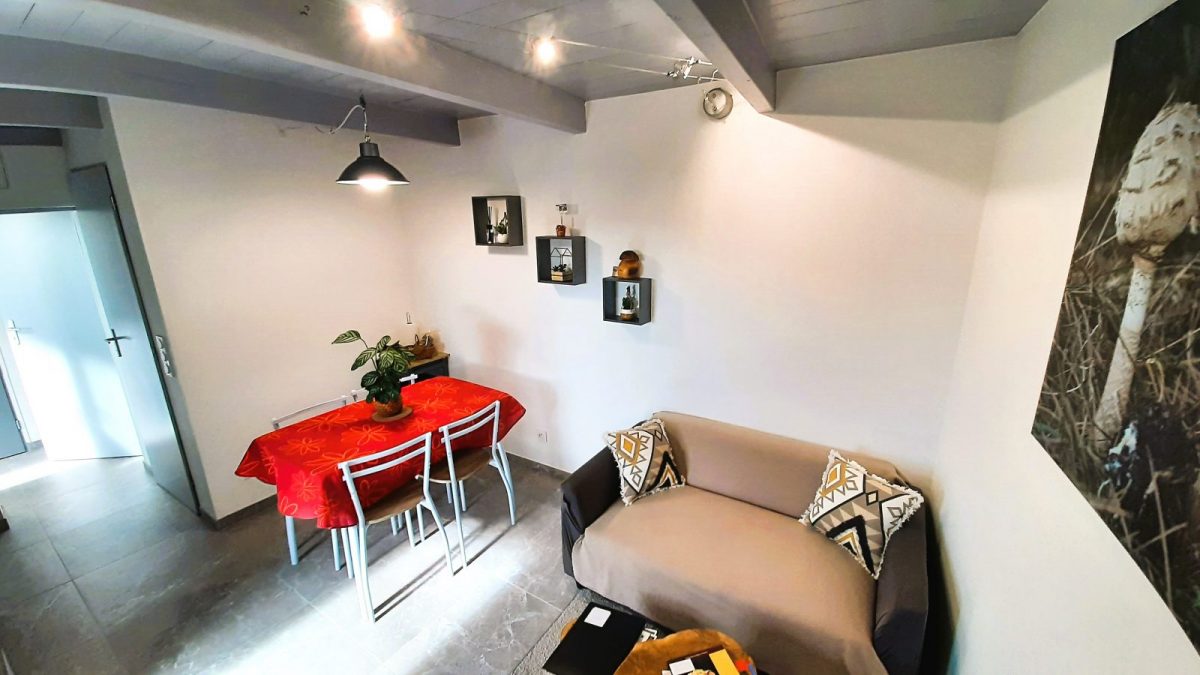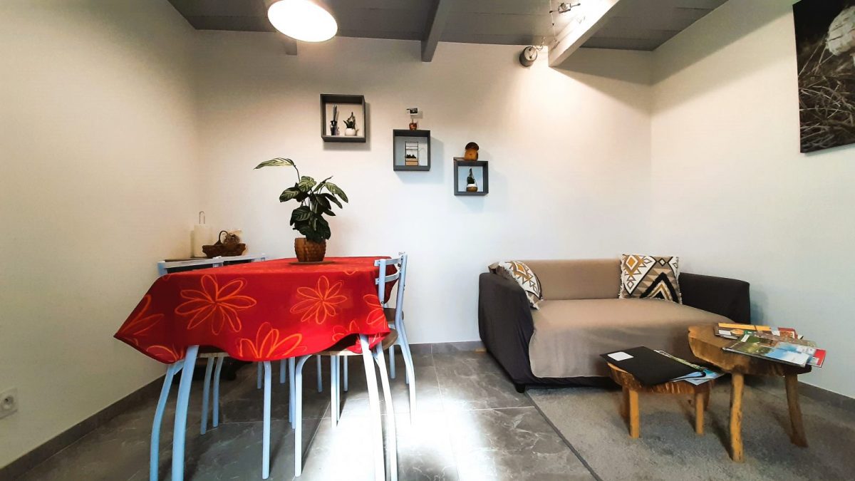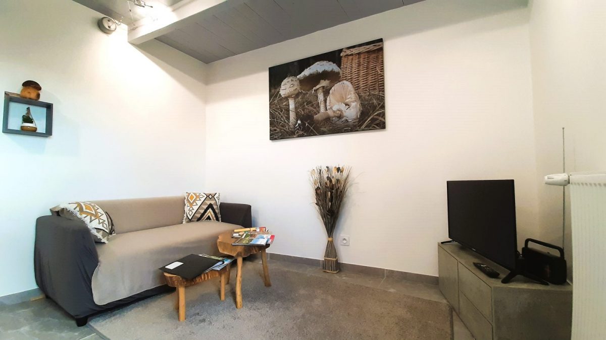 Coin détente avec canapé convertible (1 couchage) TV HD connectée, tables gigognes, tapis, poste de radio, WIFI (connexion gratuite et sécurisée), …