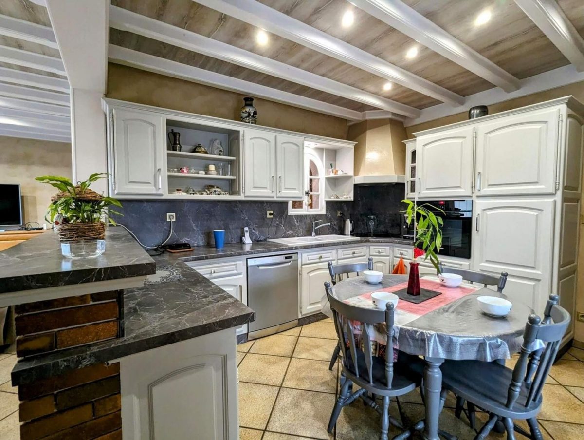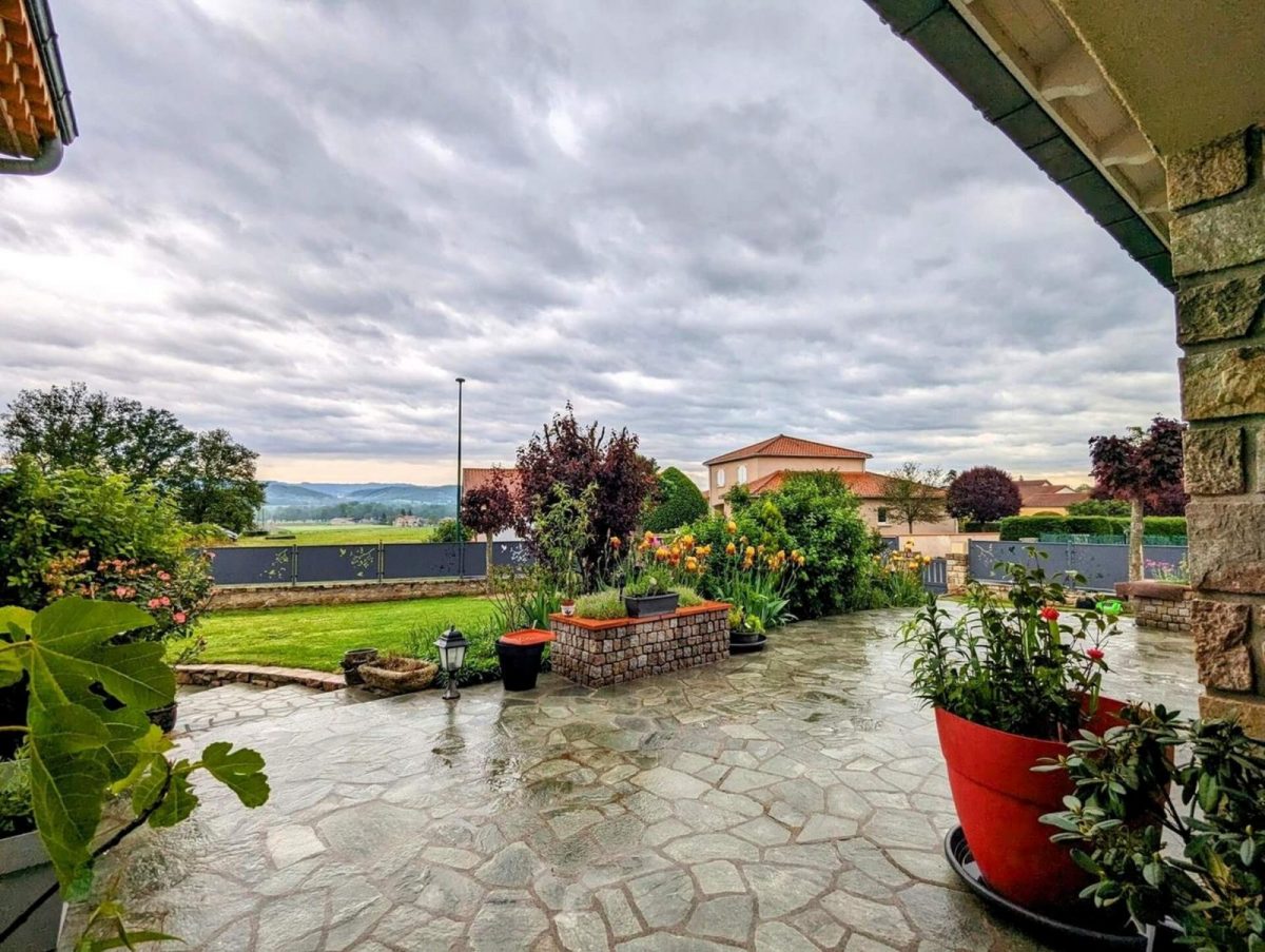 Les pièces de vie se trouvent au premier étage de la maison, accessible depuis le garage ou en passant par la terrasse ( par un chemin dallé ).
