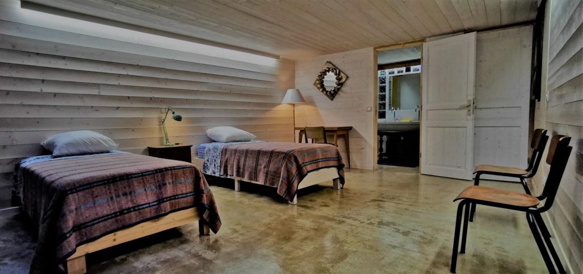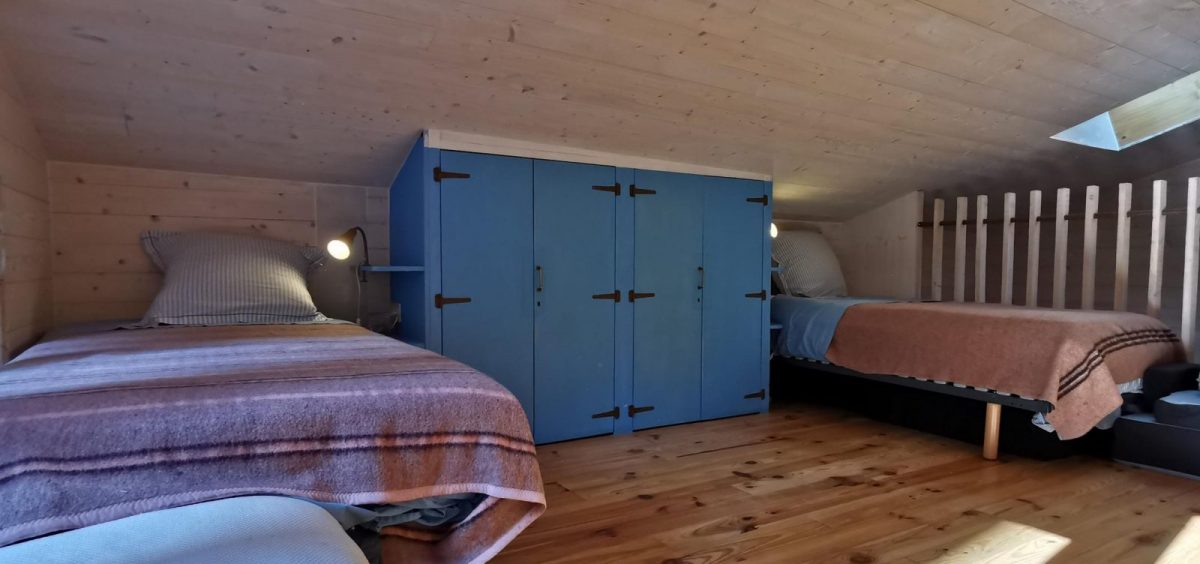 Traversant la cuisine, dans l'aile droite de la maison, vous trouverez une chambre avec 2 lits de 90, ainsi qu'une mezzanine aménagée avec 2 lits en 90, cette partie dispose également de sa salle d'eau et WC privatif indépendant.