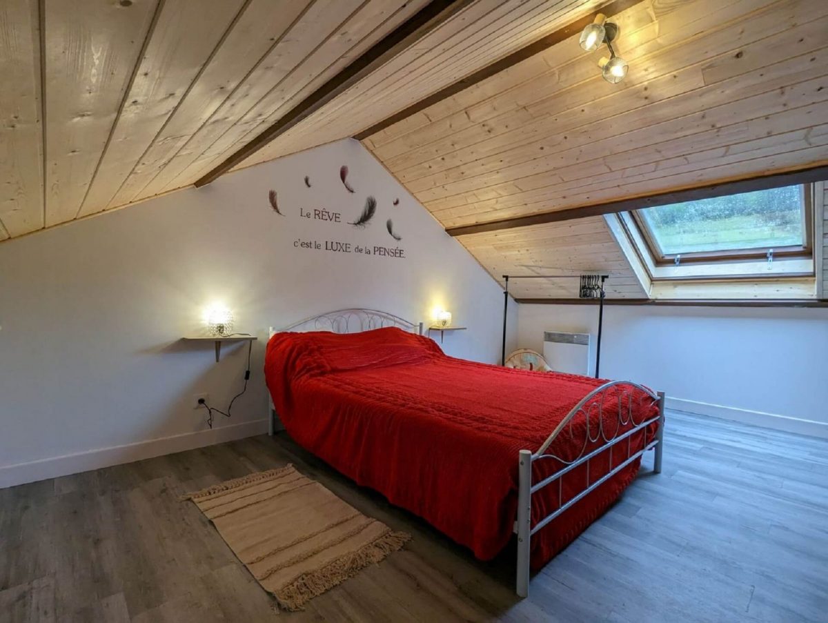 Au premier étage, vous disposerez de deux autres chambres : une équipée d'un lit en 140 et la seconde équipée de 2 lits en 90.