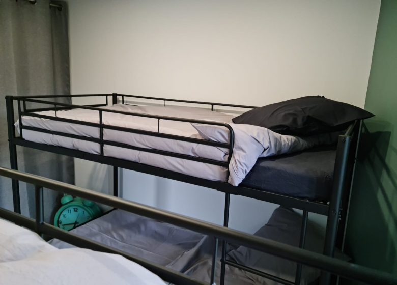 1er étage : 3 chambres (2 chambres doubles et 1 chambre quadruple) : 1 lit 2 pers. en 140x200 cm, 1 lit 2 pers. en 140x190 cm et 4 lits 1 pers. superposés en 90x190 cm, dressings (penderies et rayonnages), …