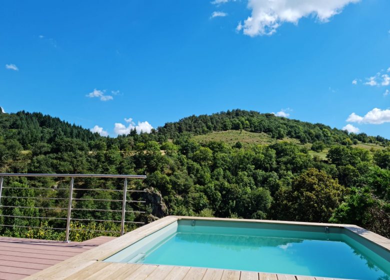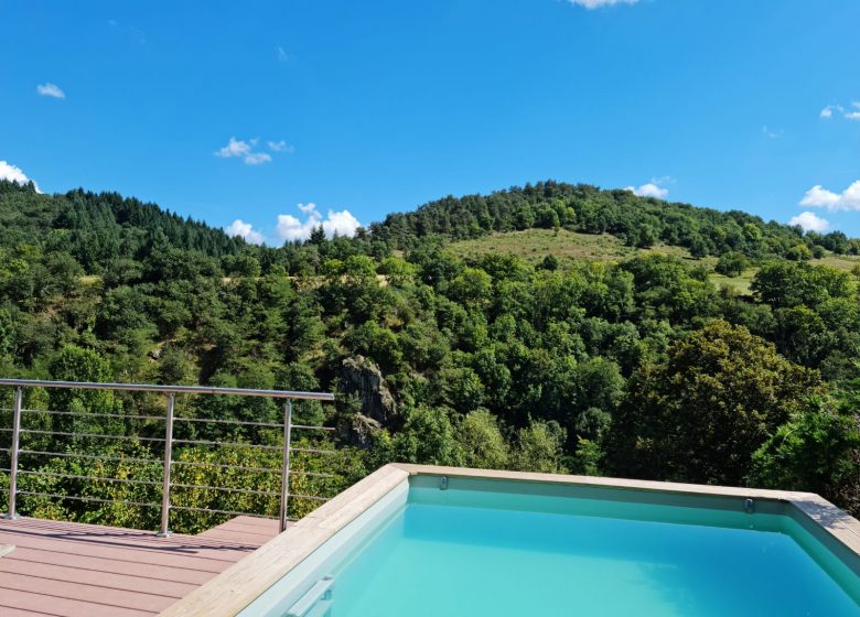 La piscine privative ou le jacuzzi privatif et la terrasse avec vue panoramique invitent aux activités de pleine nature : sports d’eau-vive, la rivière Allier est idéale pour un premier contact, en famille ou entre amis avec les plaisirs du rafting, du canoë, du kayak, … randonnées pédestres (GR470 – Sources et Gorges de l’Allier – le sentier relie Brioude en Haute-Loire à La Bastide-Puylaurent en Lozère via les Gorges de l'Allier,… et nombreux PR balisés, … randonnées cyclosportives (V70 - Via Allier : 410 km le long de la rivière Allier, depuis sa confluence à Nevers avec la Loire jusqu’à Langogne en Lozère près de sa source),... randonnées équestres,…