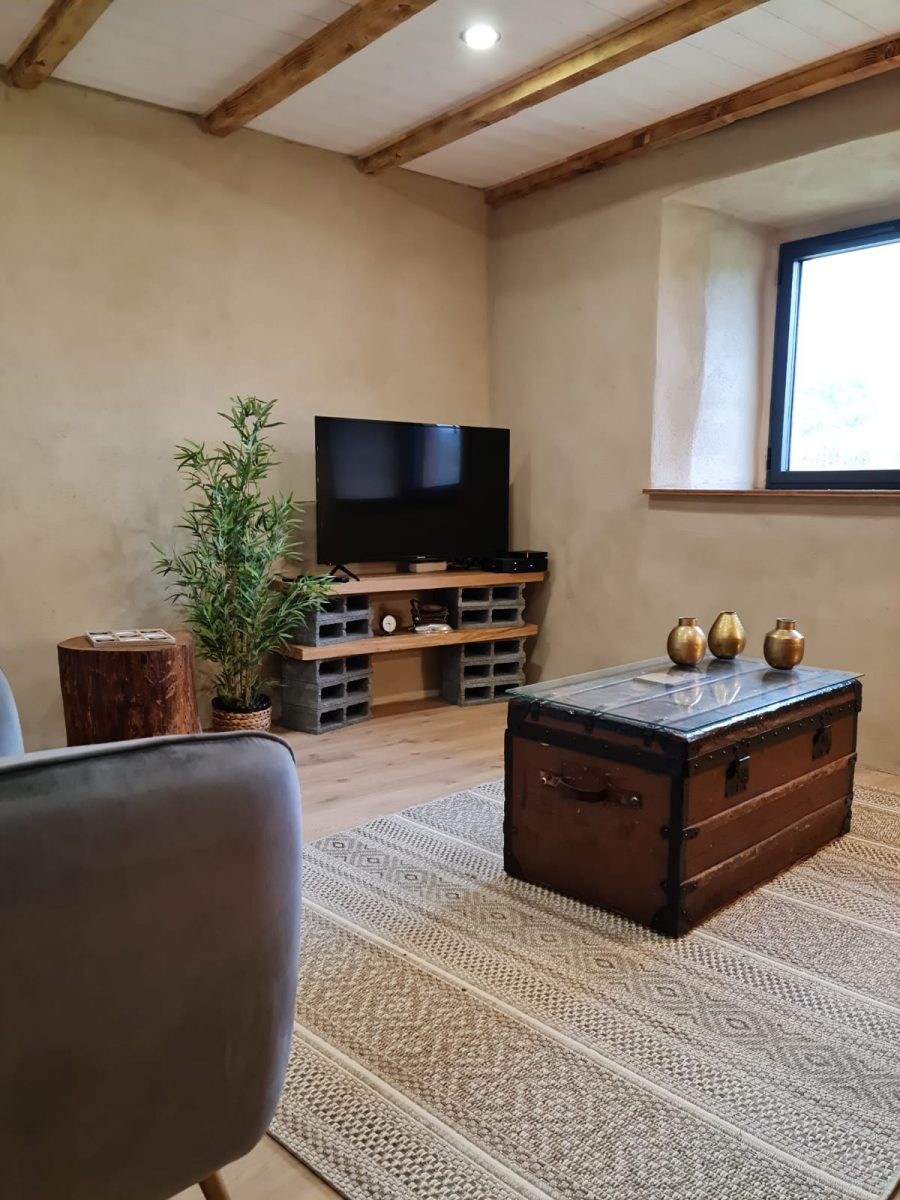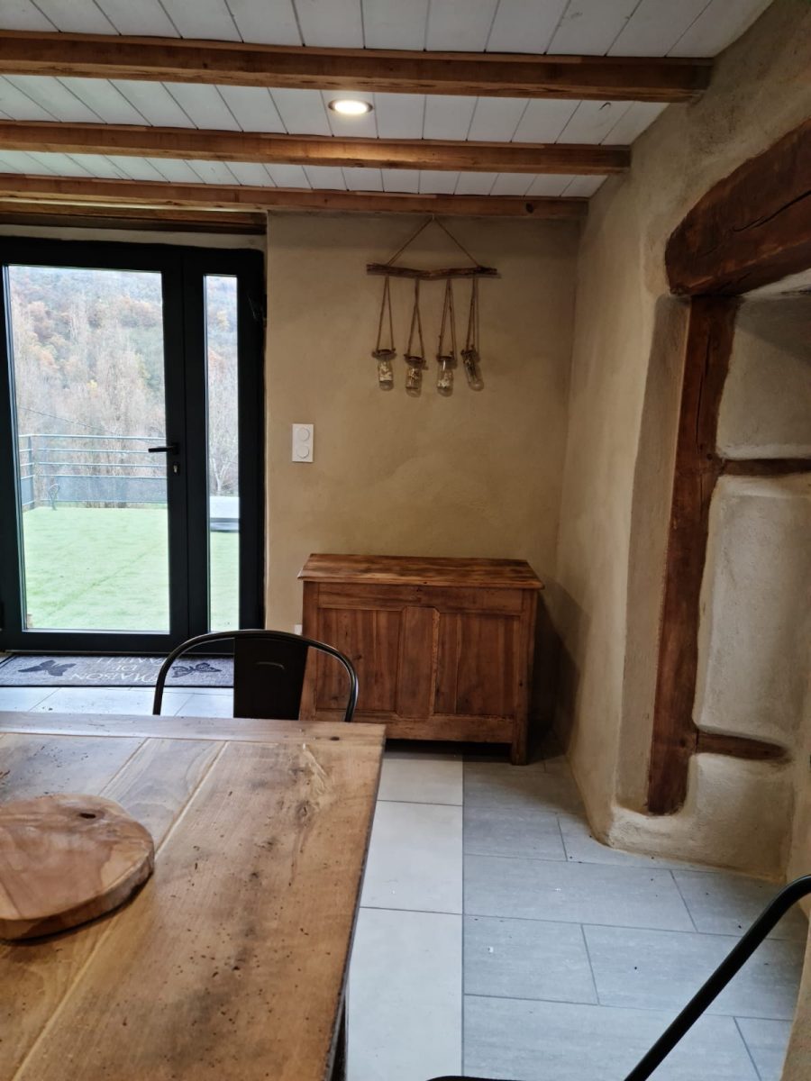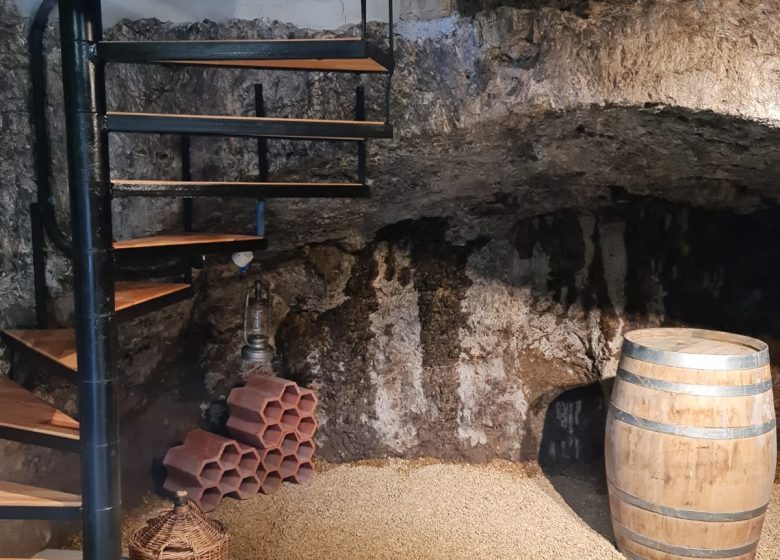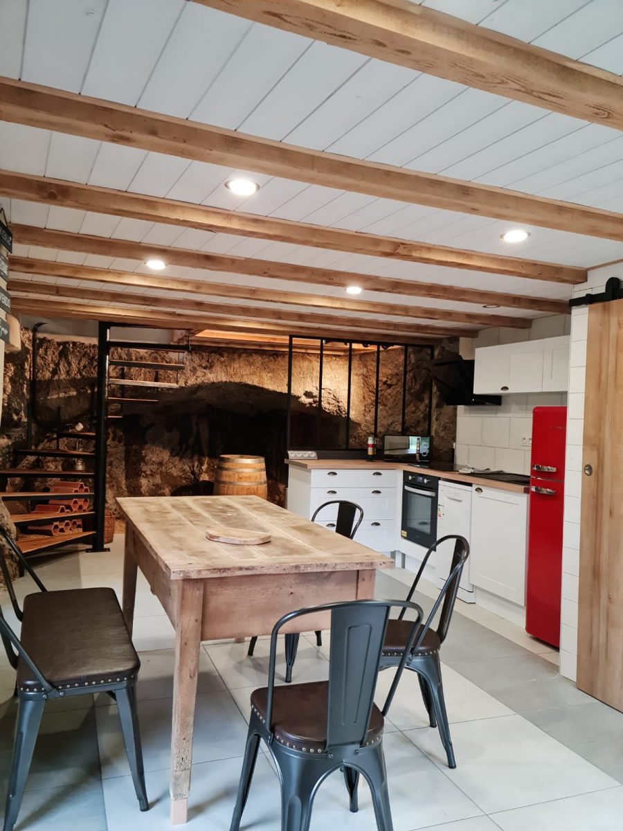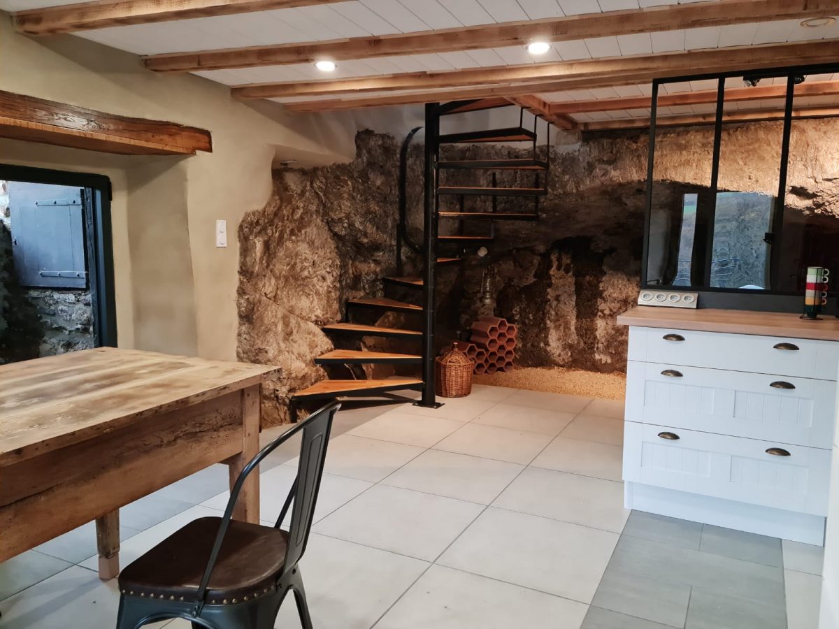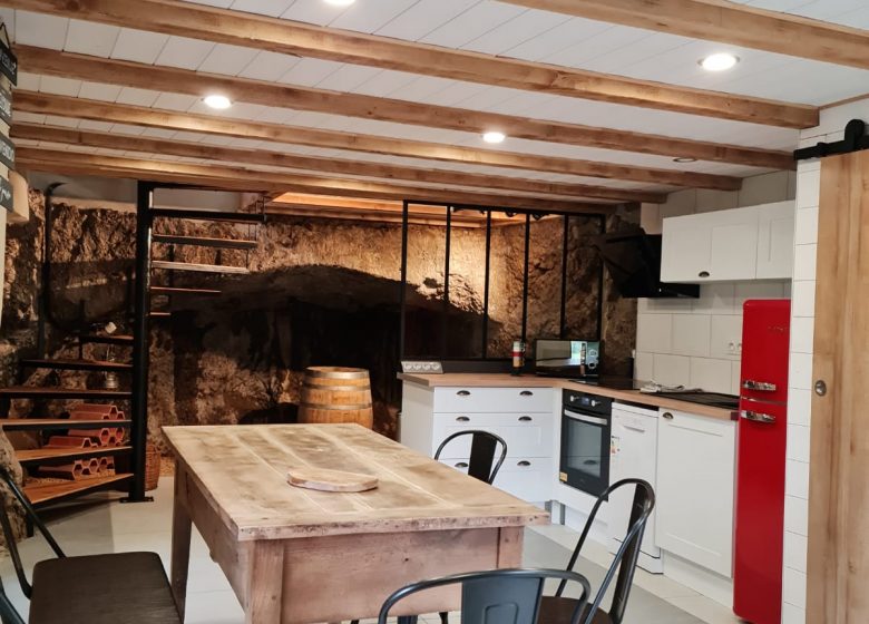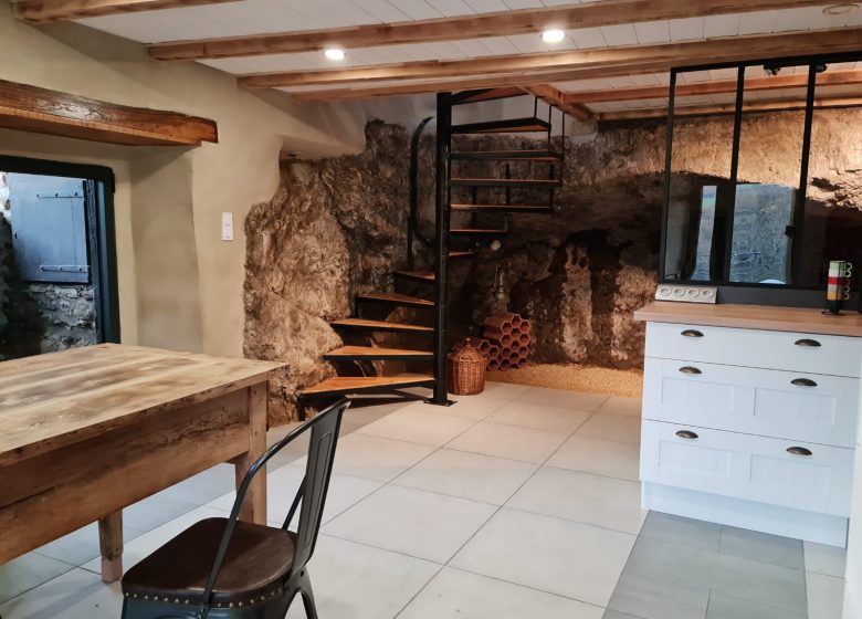 Rez-de-chaussée : cuisine ouverte sur la cave au milieu de la roche + 1 toilette