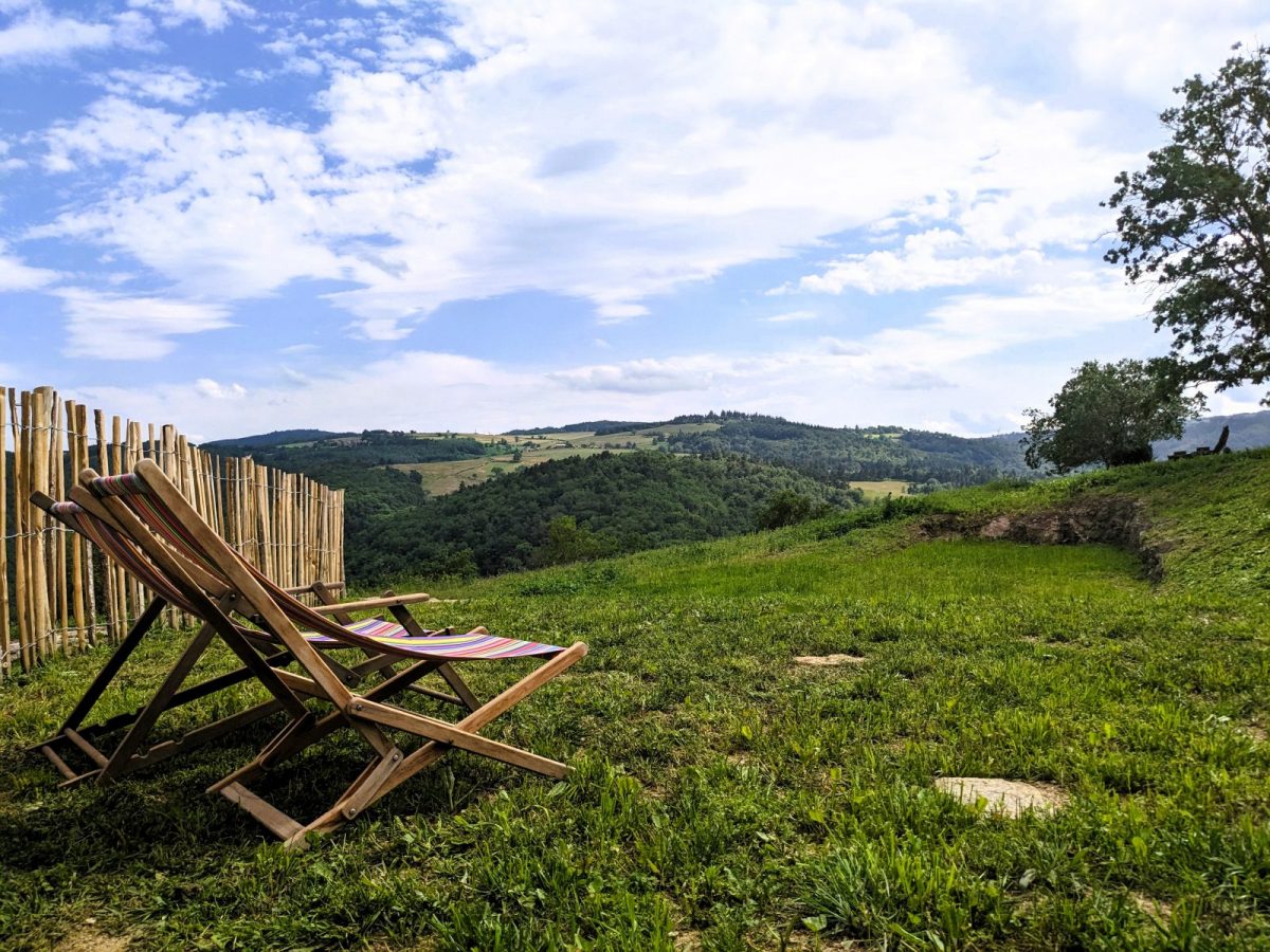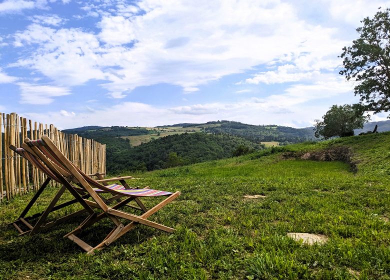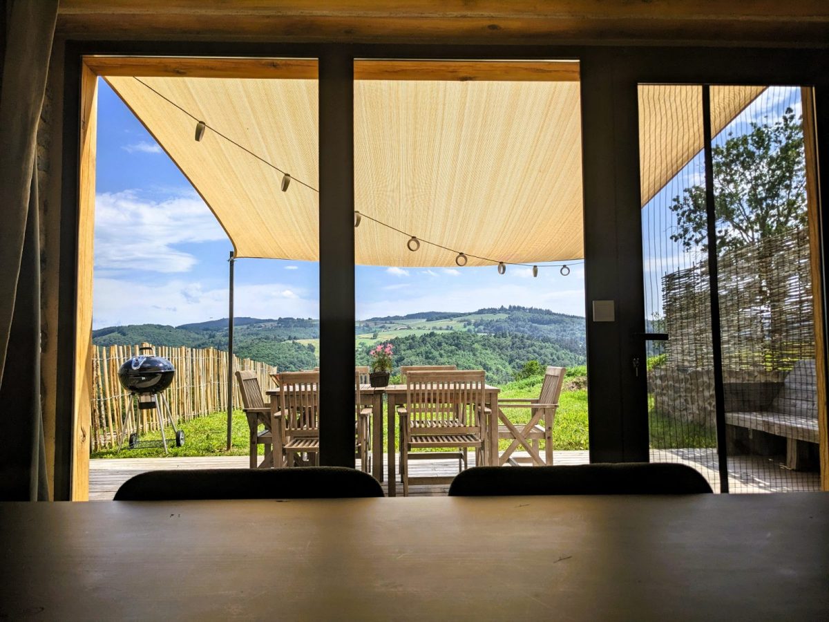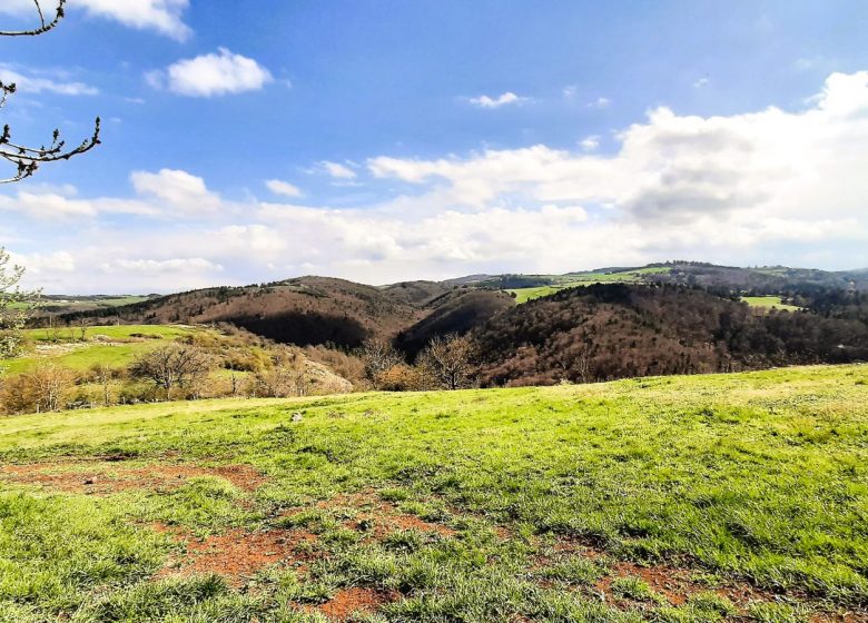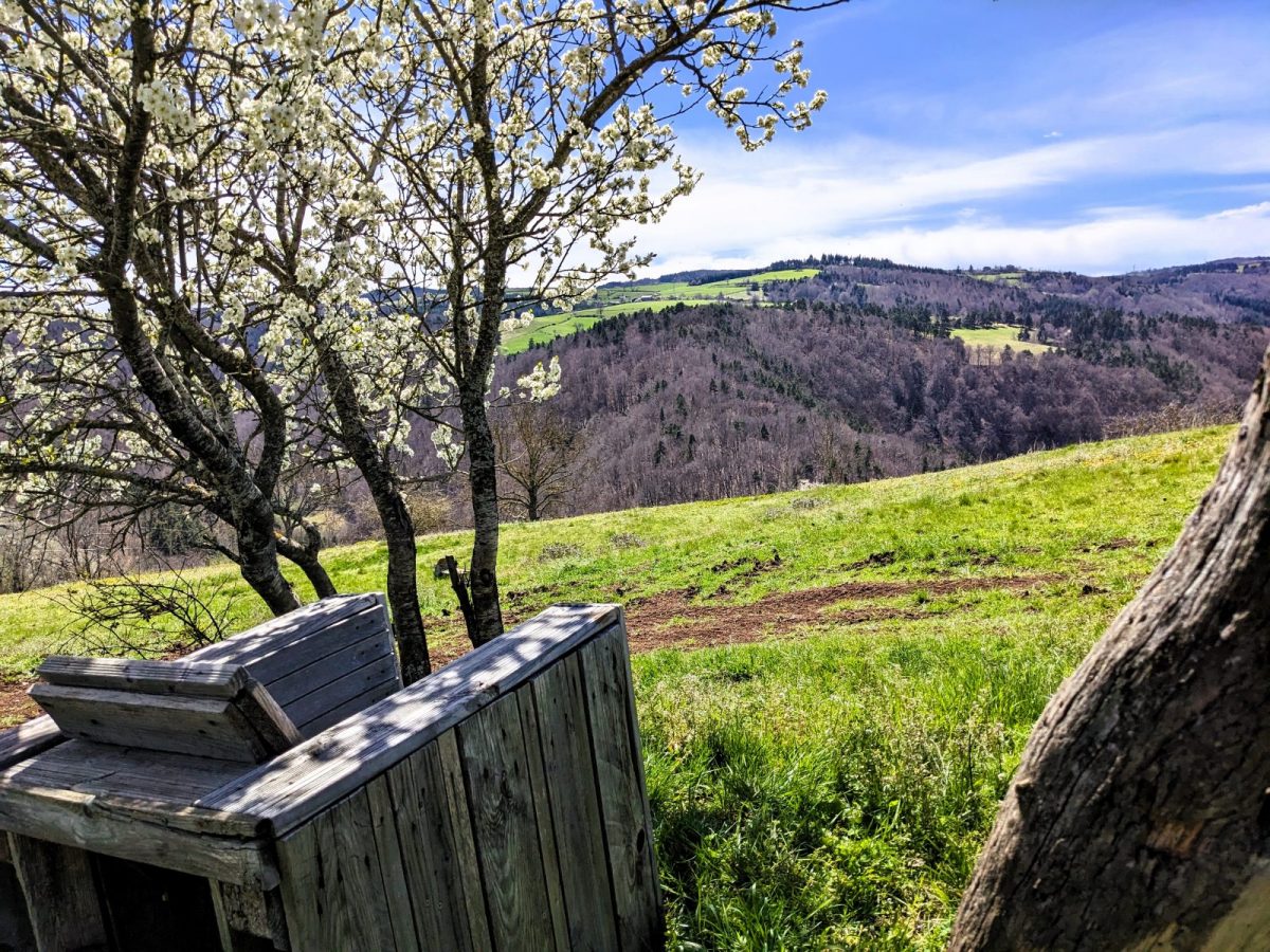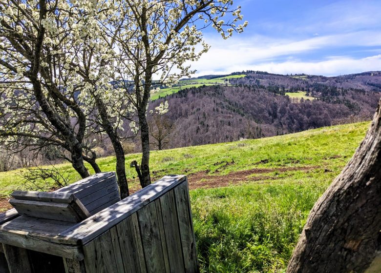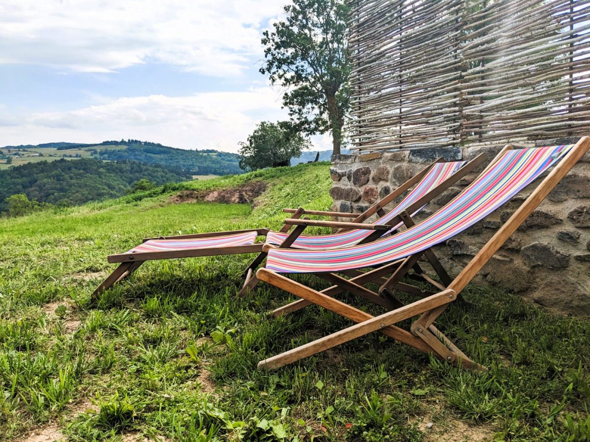 Depuis le gîte et sa terrasse, vue dégagée sur la campagne environnante et sur les Volcans d’Auvergne !