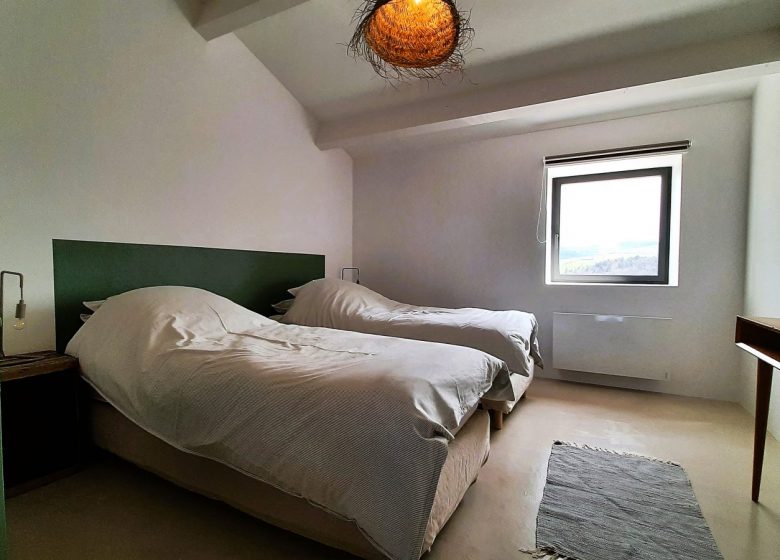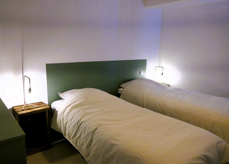 - Chambre 2 : 2 lits 1 pers. en 80x200 cm ou 160x200 cm