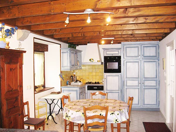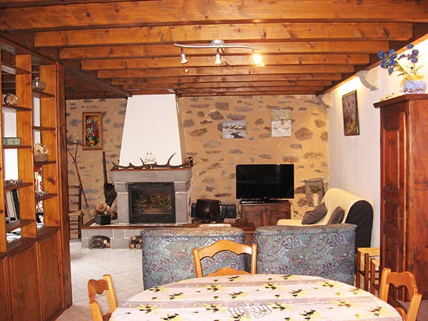 Rez-de-chaussée : hall d'entrée, WC, séjour avec cuisine toute équipée, cheminée avec insert, TV écran plat.