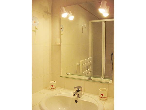 Chaque chambre possède une cabine de douche avec lavabo sur meuble et sèche-serviettes électrique.