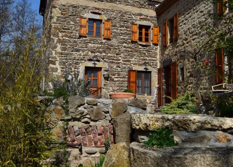 Belle terrasse avec vue sur le jardin et la rivière Alagnon.