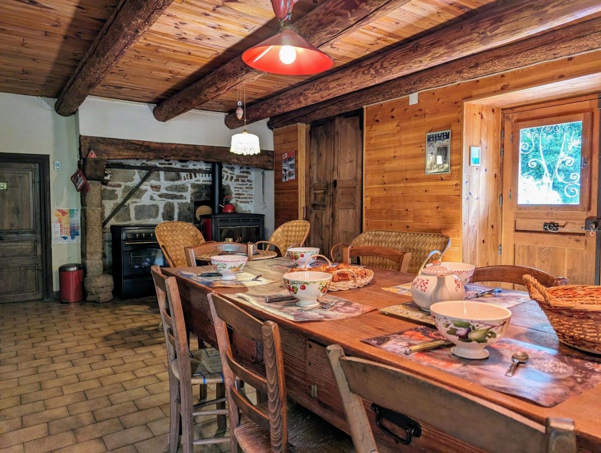 Le gîte dispose d'une cour non fermée (70 m²), terrain clos sur le côté (400 m²), grand pré non clos, abri pour 2 voitures. R.d.c. : séjour-cuisine (appareils à raclette), coin détente indépendant (TV, chaine hifi, poêle à bois, bois fourni gracieusement), cellier, salle d'eau, wc. 1er étage : 3 chambres (1 lit 160, 1 lit 140, 3 lits 90, 1 lit enfant), salle d'eau, wc. Pour votre confort, les charges sont incluses dans le tarif. Equipement bébé : lit bébé sur demande, chaise haute, chauffe-biberon, set à langer, pot. A proximité : pêche à la truite sur place dans le Doulon et à proximité dans la Senouire, la Dore ou en plan d'eau (Champagnac-le-Vieux à 7 km), randonnées avec topoguides, La Chaise-Dieu à 18 km (abbatiale, festival de musique sacrée, médecin et pharmacie...). Petits commerces et services à Champagnac-le-Vieux à 6 km. Tous commerces et services à Brioude (25 km).