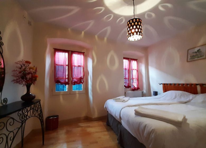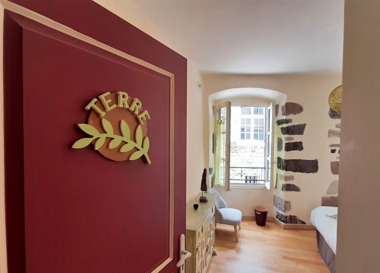Ces 2 chambres indépendantes sont situées côte à côte et peuvent constituer une suite parentale et disposent d’une salle d’eau partagée avec la chambre TERRE.