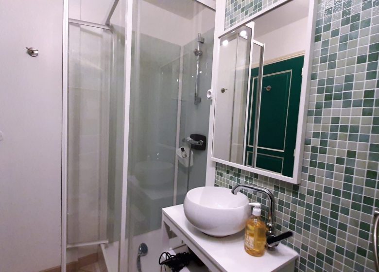Ces 2 chambres indépendantes (Air et Suite Air) sont situées côte à côte et constituent une suite parentale et disposent d’une salle d’eau privative avec douche, lavabo et WC, située dans la chambre.