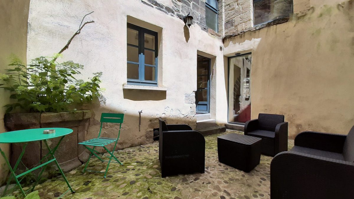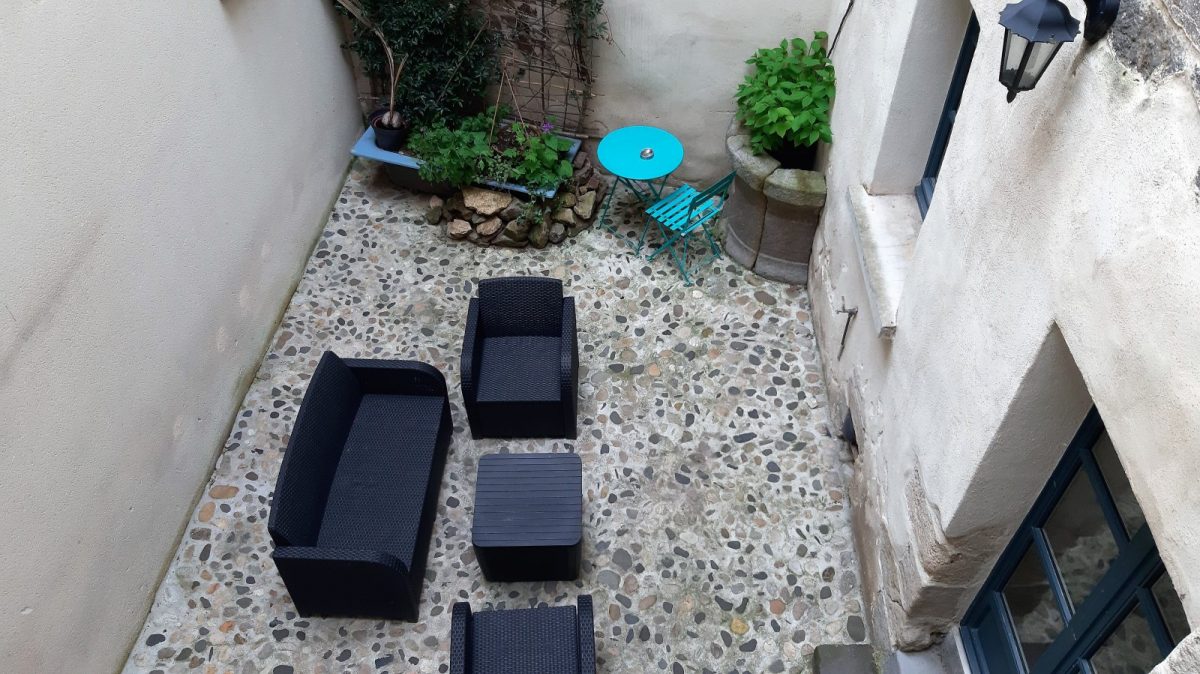 Patio privatif à la maison avec accès direct depuis la grande pièce à vivre : mobilier de jardin.