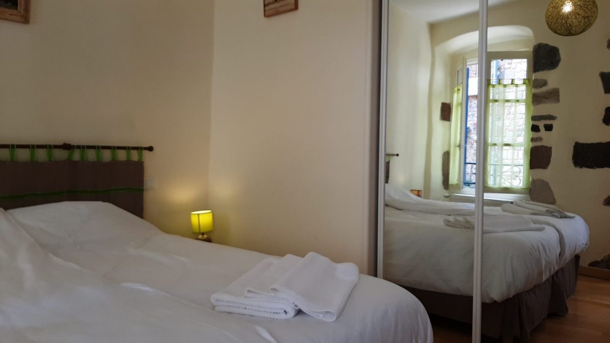 ►Chambre (13 m2), 2 fenêtres ouvrant sur l’extérieur : chambre double (2 lits 1 pers. en 90x190 cm ou possibilité de réunir les lits en un seul grand lit en 180x190 cm).
