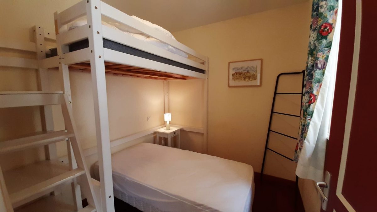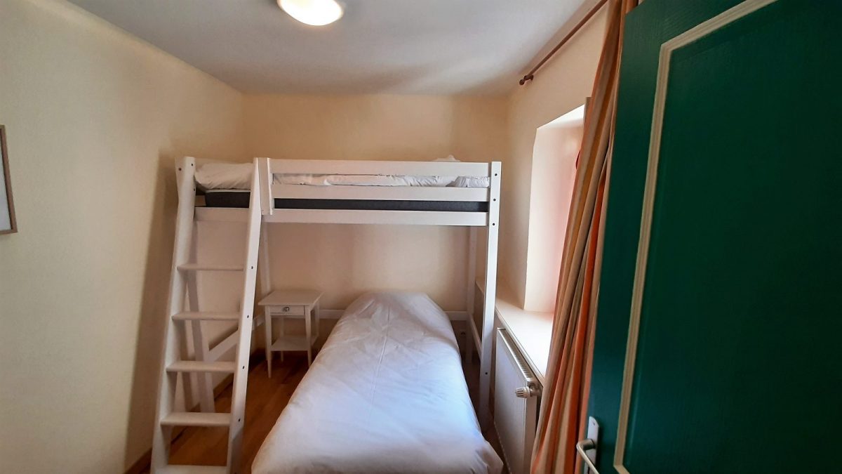 ►Chambre (7 m2), fenêtre ouvrant sur l’extérieur : chambre avec 1 lit simple et 1 lit mezzanine (2 x 90 x 190 cm).
